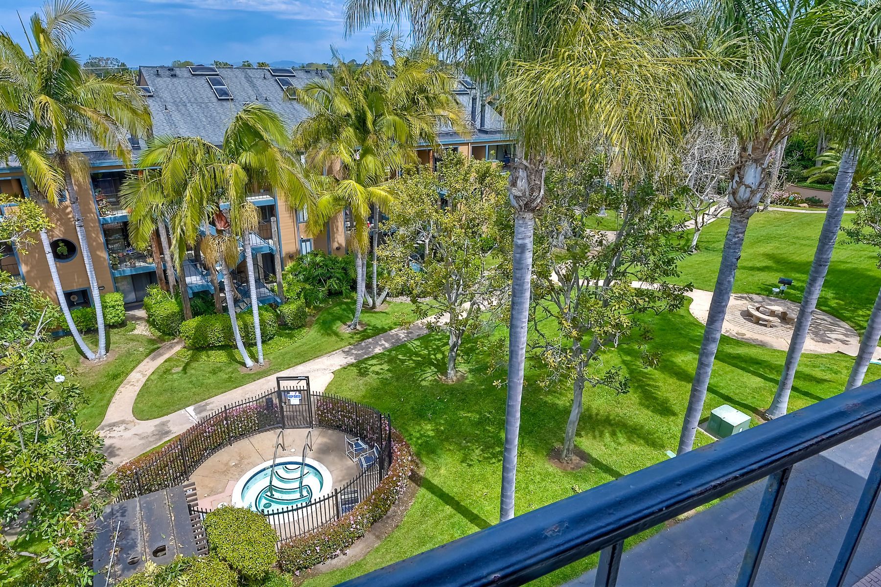 This condo Is a very a special find. Located higher than most on the second floor with peak ocean views. Two separate one car garages and one is over sized. Two bedrooms and an office which could easily be a third bedroom. Master bedroom is huge with vaulted ceilings and spacious bathroom. Two large balconies one overlooking the spa. A little creativity will make this home a masterpiece.