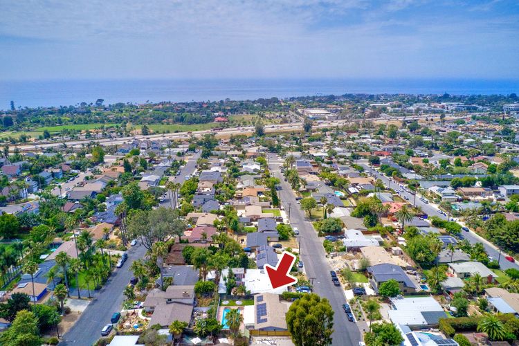 Claim your piece of the Southern California beach lifestyle in this must-see, highly updated 3 bedroom 3 bathroom single story on a quiet, tree-lined street in gorgeous Cardiff by the Sea. Impeccably updated, the home offers seamless indoor outdoor flow with a large La Cantina door inviting you to a sun soaked south facing backyard and a gorgeous pool! Every inch of the interior of the home was recently tastefully remodeled with high end surfaces. Beautiful and warm engineered hardwood floors, balance the very clean ad contemporary designs of the kitchen and fixtures. Dedicated laundry room, fully owned solar, tankless water heater, new A/C installed 2019, quartz countertops with waterfall edge, and peek ocean view, this home truly has it all. Dedicated laundry room, fully owned solar, tankless water heater, new A/C installed 2019, quartz countertops with waterfall edge, and peek ocean view, this home truly has it all. Excellent and quaint location in east Cardiff, this home is walking distance to Ada Elementary, San Dieguito Academy. Encinitas Community Park, Bobby Riggs Racket and Paddle Club, Lake Park and less than 1 mile to Vons and Scripps Hospital. Last but not least, the most quintessential stretch of north county coastline is less than 2 miles away with the highest concentration of surf spots in California! Come see it before it's gone!