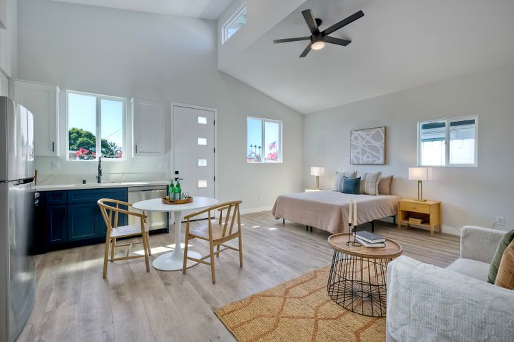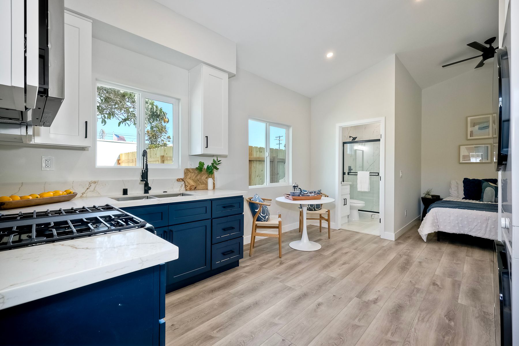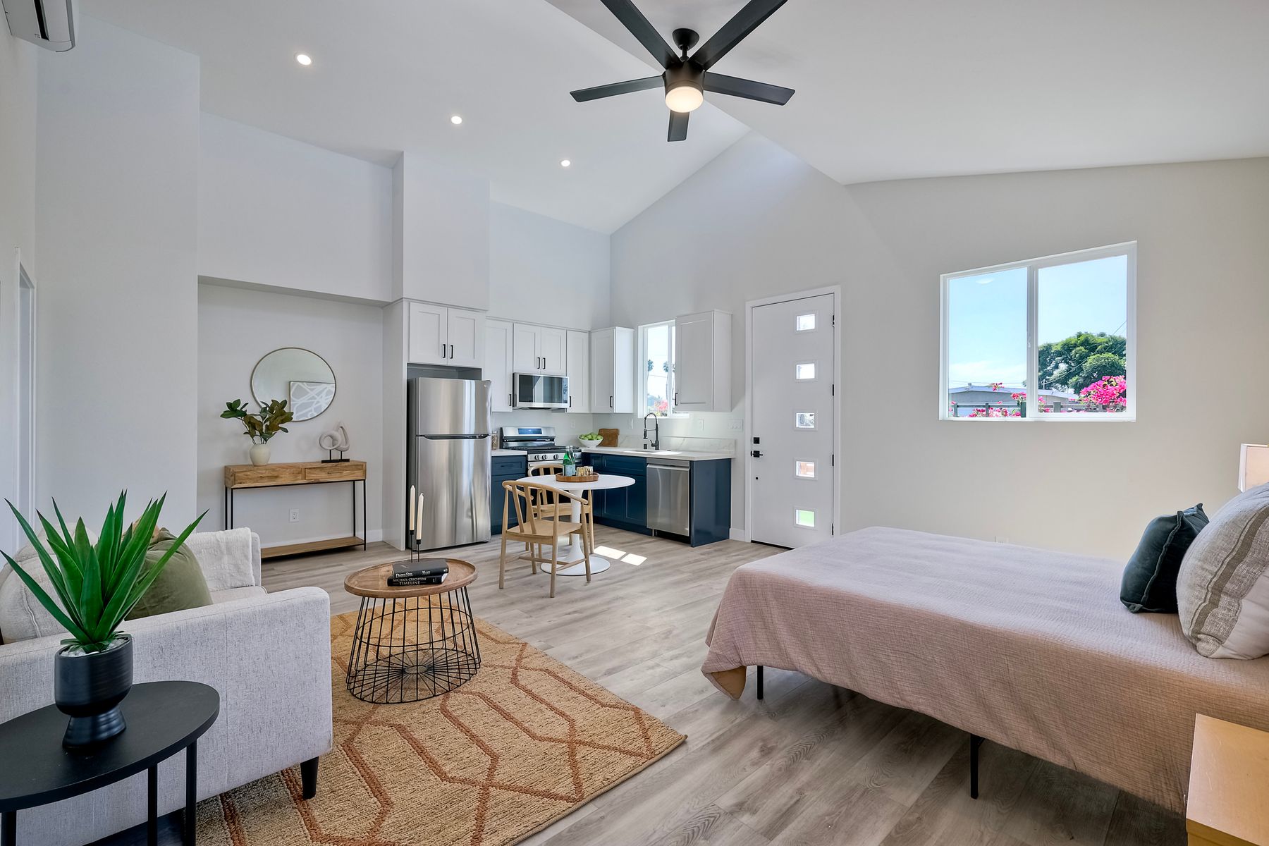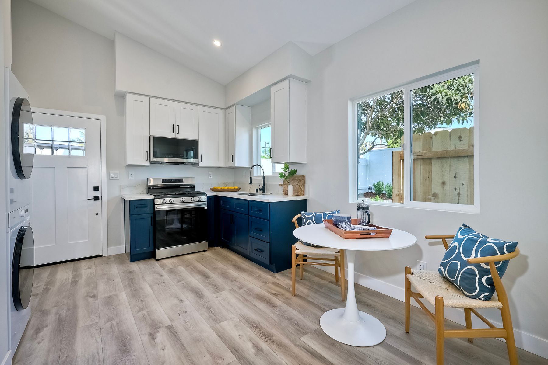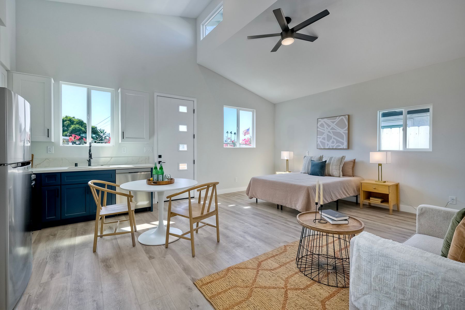 Brand new remodel/addition house with 2 ADU's. Almost completely new construction started/finished in 2024. Main house is a 3 bed 3 bath home at 1,305 sq feet. It consists of a large great room with 14 foot ceilings with skylights, a beautiful kitchen, walk in pantry, new appliances, a large island with waterfall counters, a dining room and the living room. There are 2 primary bedrooms in the main home as well as laundry (washer and dryer are included). The main house has a wonderful back yard with low maintenance artificial turf! Simply gorgeous! The full ADU is a large, 508 sq foot studio with plenty of room for a bedroom area and living room area. There is a full kitchen, walk in closet, stackable laundry closet and 14 foot ceilings with skylights! This unit also has its own private yard space with turf. The JR ADU is 304 sq feet of well designed space! This JR ADU has a bedroom area and a living room area as well and features a full kitchen, lovely bathroom, laundry, and a private courtyard as well as a wonderful backyard! This place would be great to live in one and rent the other 2 units OR for an extended family to occupy the entire set up! MUST SEE! House with 2 additional ADU's, 3 total units.