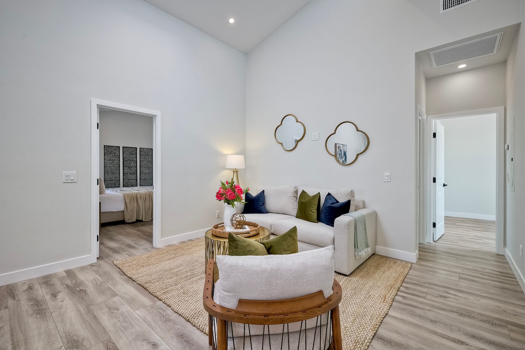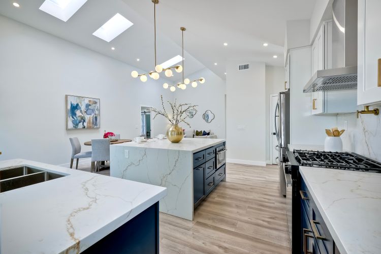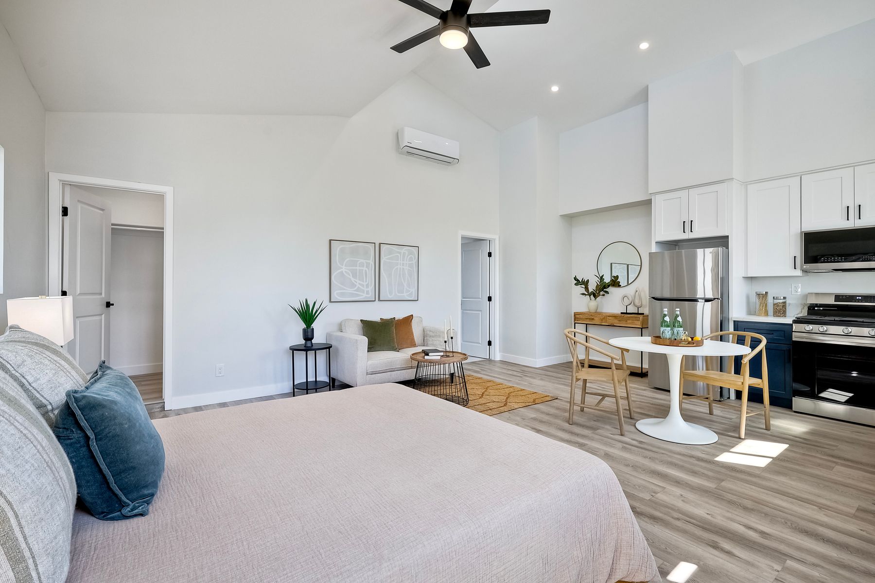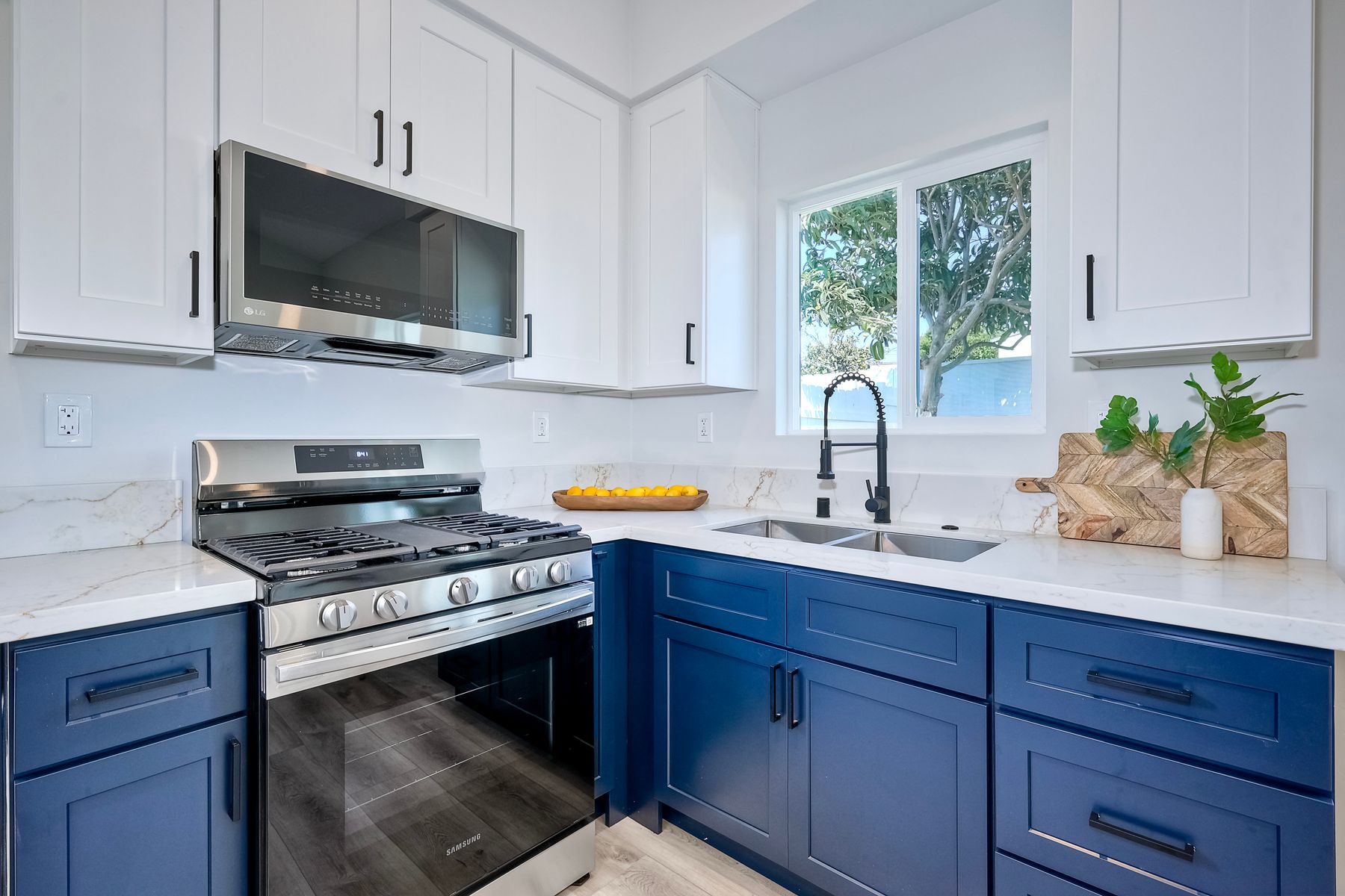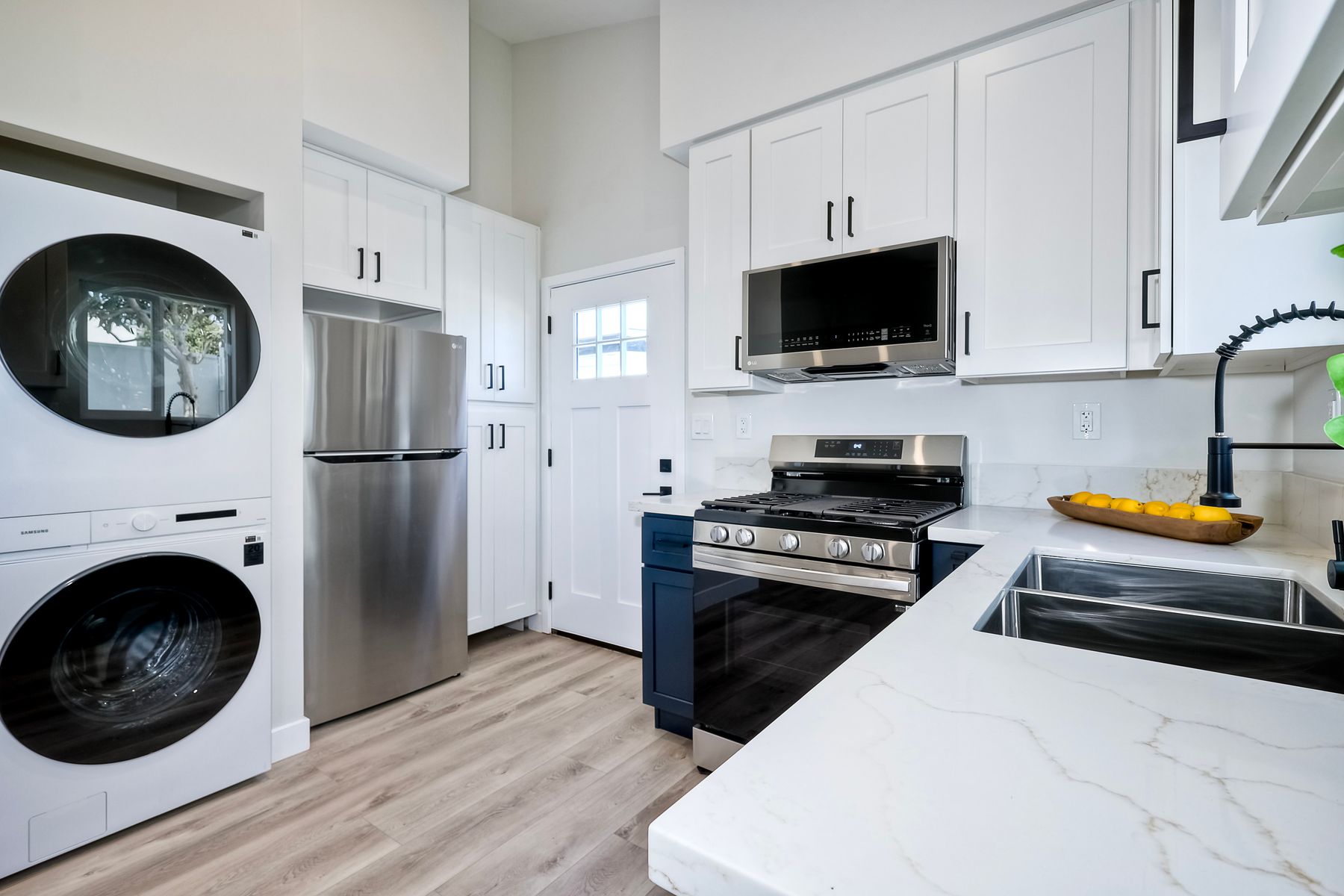 Brand new remodel/addition house with 2 ADU's. Almost completely new construction started/finished in 2024. Main house is a 3 bed 3 bath home at 1,305 sq feet. It consists of a large great room with 14 foot ceilings with skylights, a beautiful kitchen, walk in pantry, new appliances, a large island with waterfall counters, a dining room and the living room. There are 2 primary bedrooms in the main home as well as laundry (washer and dryer are included). The main house has a wonderful back yard with low maintenance artificial turf! Simply gorgeous! The full ADU is a large, 508 sq foot studio with plenty of room for a bedroom area and living room area. There is a full kitchen, walk in closet, stackable laundry closet and 14 foot ceilings with skylights! This unit also has its own private yard space with turf. The JR ADU is 304 sq feet of well designed space! This JR ADU has a bedroom area and a living room area as well and features a full kitchen, lovely bathroom, laundry, and a private courtyard as well as a wonderful backyard! This place would be great to live in one and rent the other 2 units OR for an extended family to occupy the entire set up! MUST SEE! House with 2 additional ADU's, 3 total units.