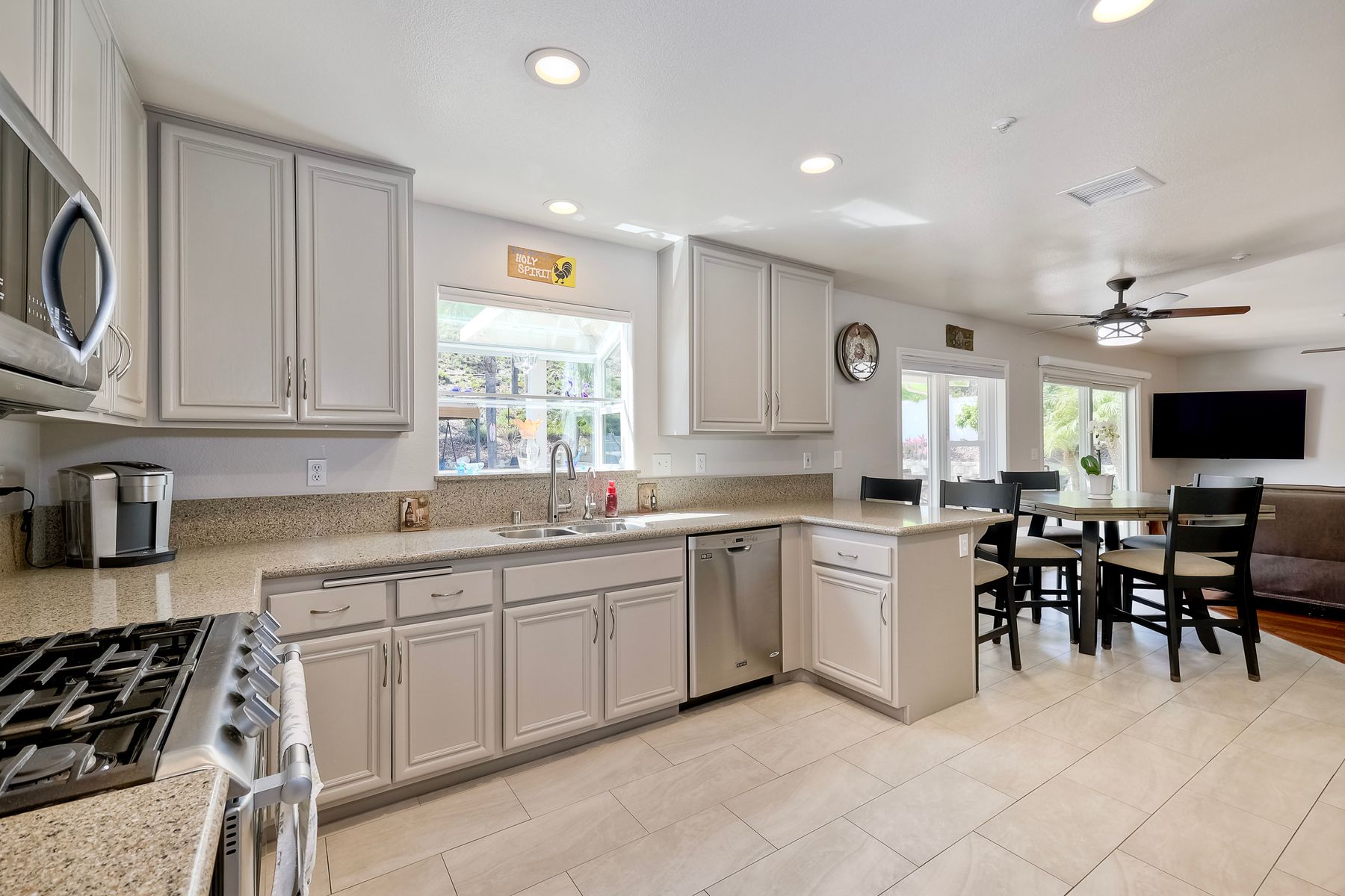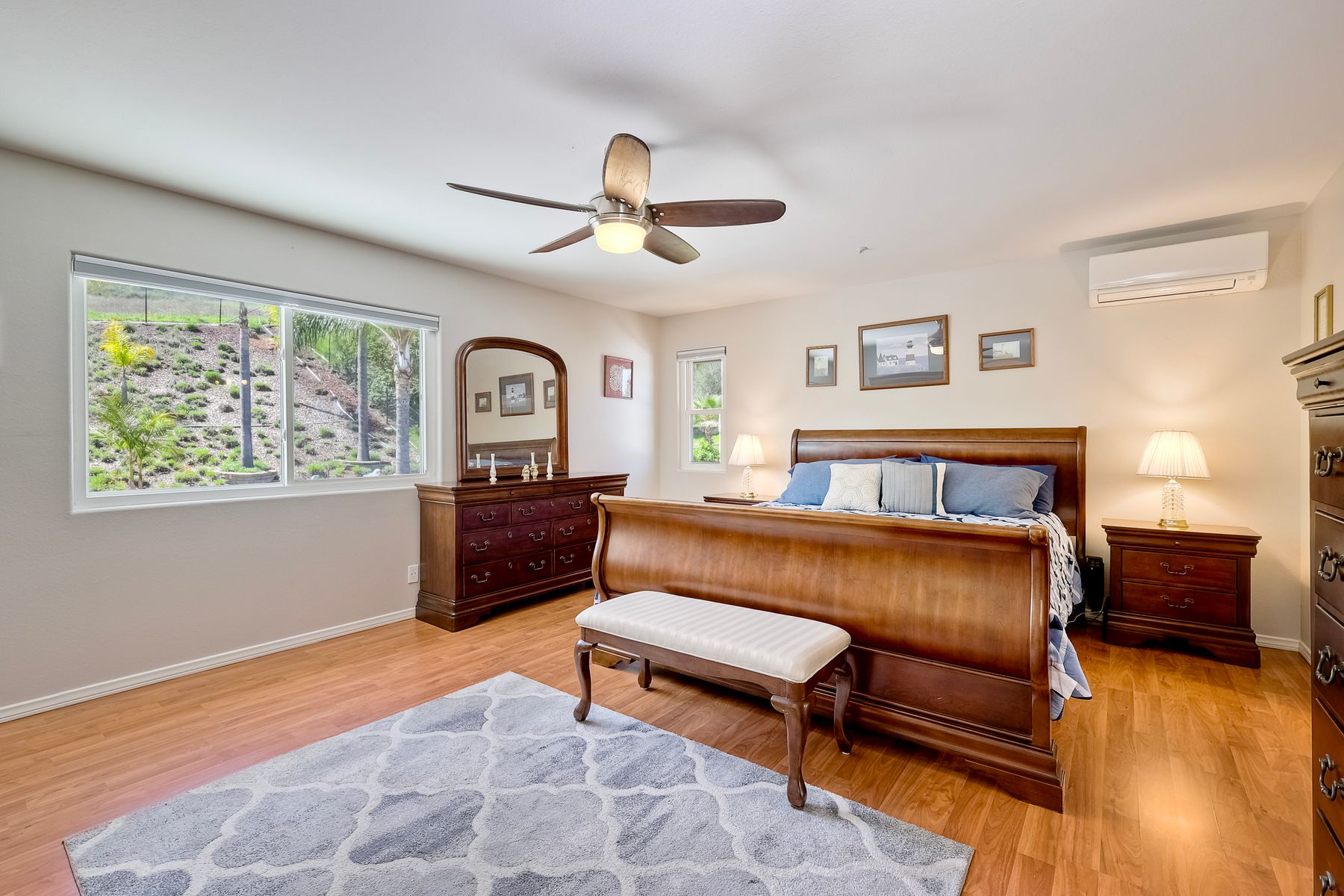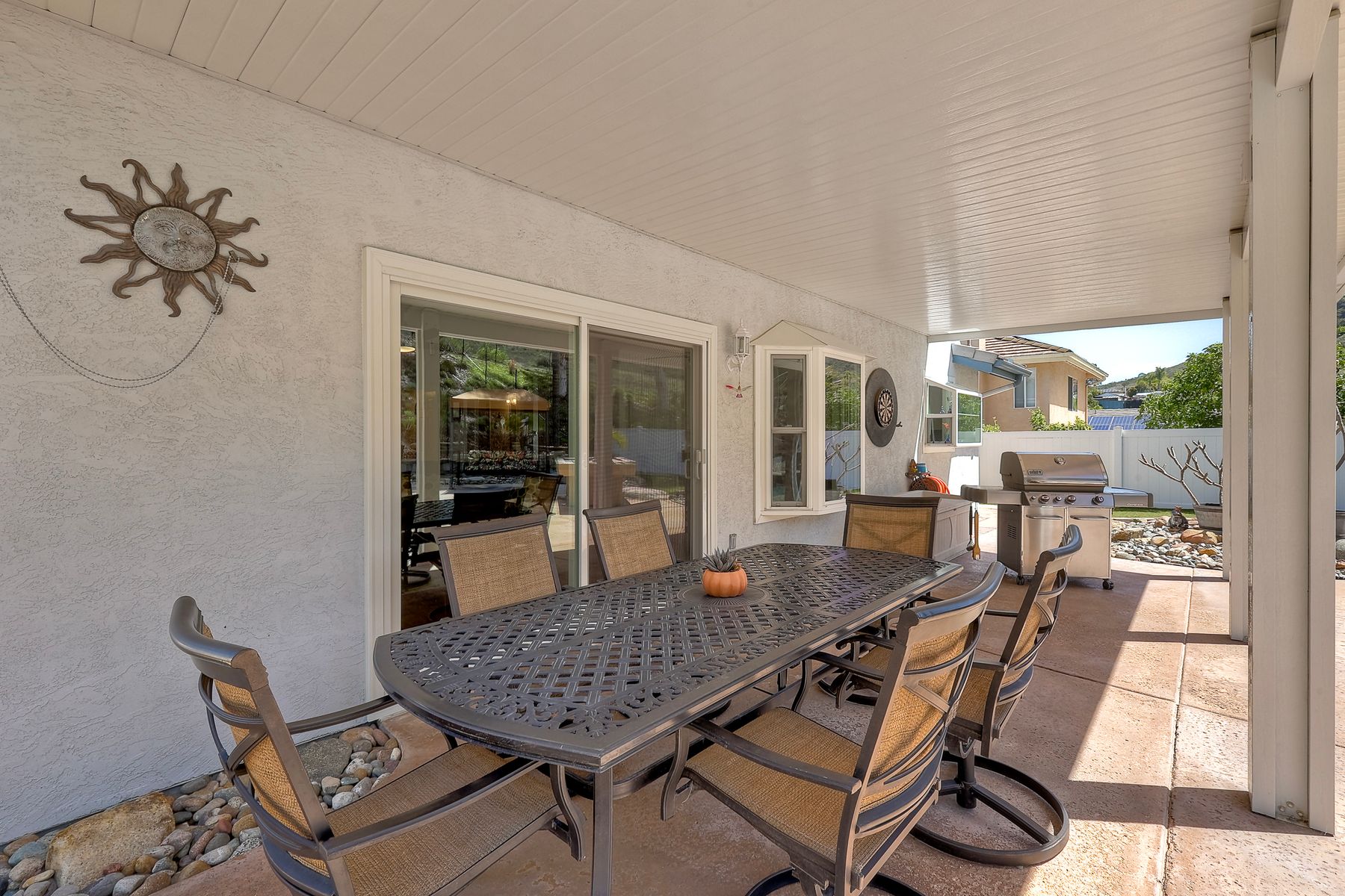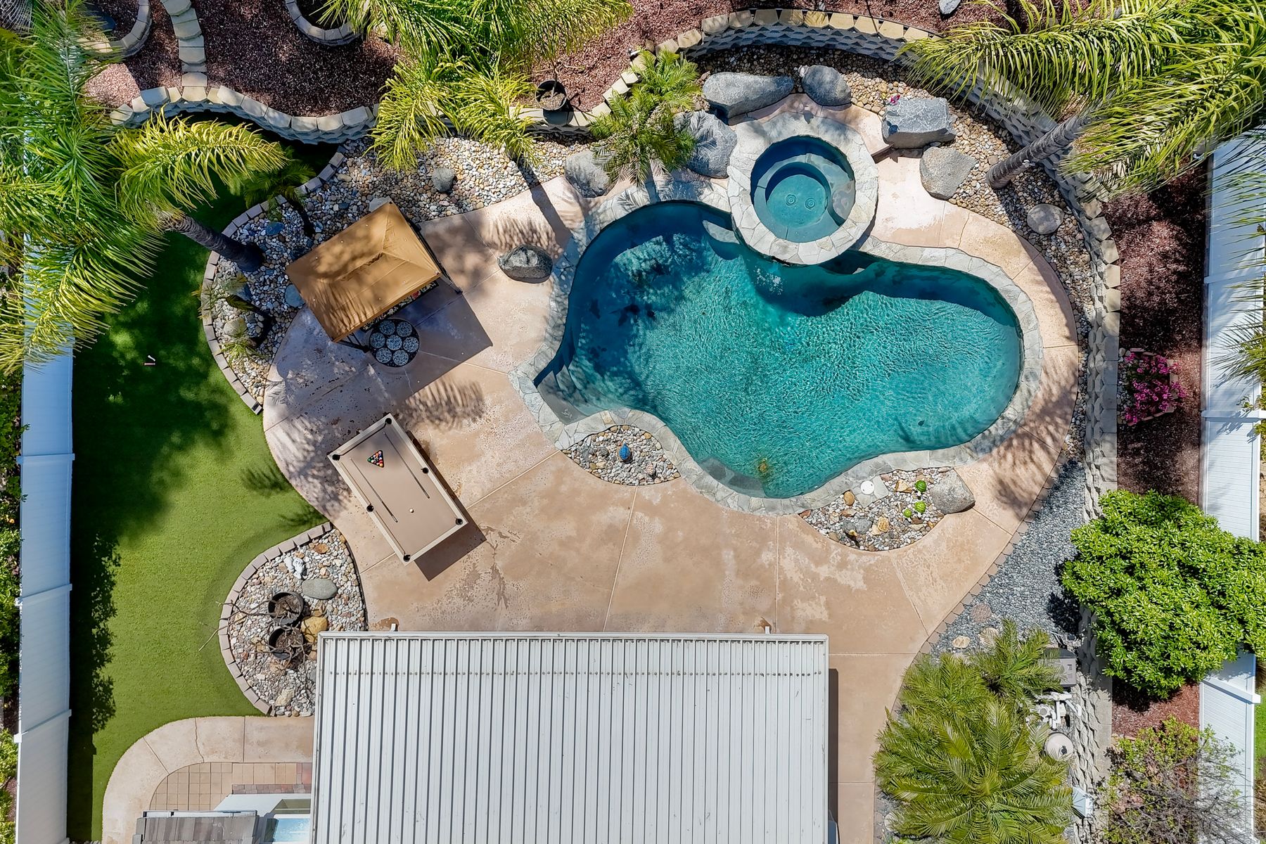 How can it get any better? Beyond turnkey 2,400 SqFt Home on .25 acre meticulously landscaped lot complete with pool/spa, fully owned solar, fruit trees and backing up to Cowles Mountain views!! If you have been seeking a home for your family that provides entertainment opportunities & memories which will last for years ~ you may well have found it! Offering 4 bedrooms (of which one is on entry level), PLUS an office (attached to Primary) and three FULL bathrooms (one on entry level). This open floorplan encourages everyone to share time and space together yet also offers privacy when one needs it. The interior: tastefully upgraded with colors and finishes that are sure to please the most particular of buyers. Kitchen and all three bathrooms have been renovated in neutral tones and impeccable finishes. Cherry laminate flooring - tasteful and easy to care for. The exterior: Designed with FUN in mind - this spacious backyard and pool will make your home the place that everyone wants to be!! ADDITIONAL benefits: FULLY OWNED solar panels. EV charger in the garage. Up-down blinds. Dual pane windows installed 15 years ago. NEW ROOF in 2018. 10-Year New HVAC. House exterior painted within last 5 years. Over-sized 3-car garage w/ ample storage and shelving. This home - situated in the very Southwest corner of Santee puts you close to freeway access, within 30 minutes of the airport, within 30 minutes of the coast, at the base of Cowles Mountain (for the adventurer in you). Just when you may have lost hope that the perfect home existed for you ~ 8513 Mesa Heights is here to restore that hope and waiting for you to start enjoying all the future has to offer!!