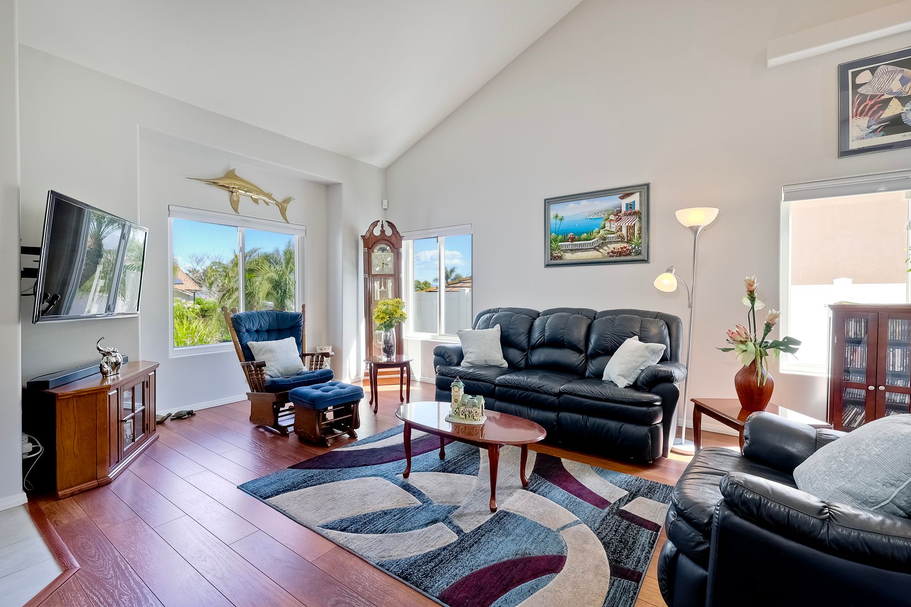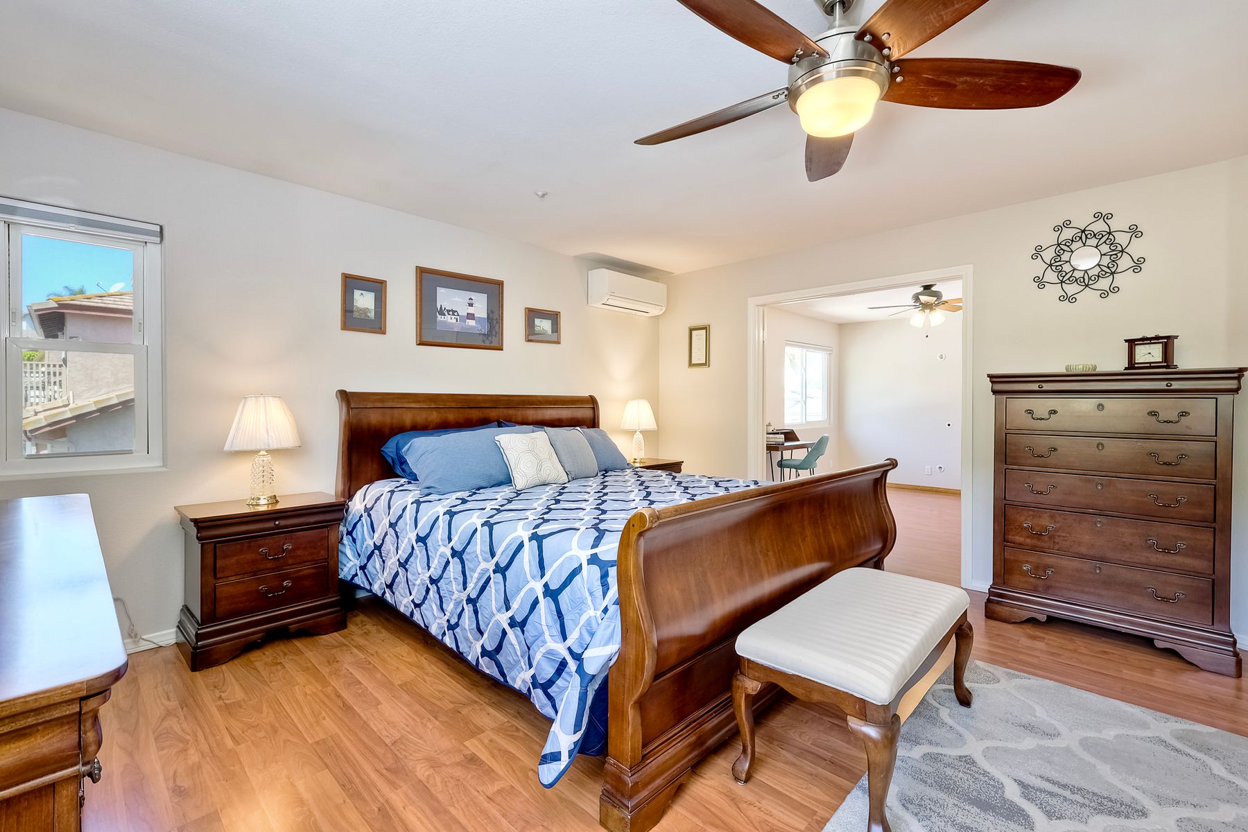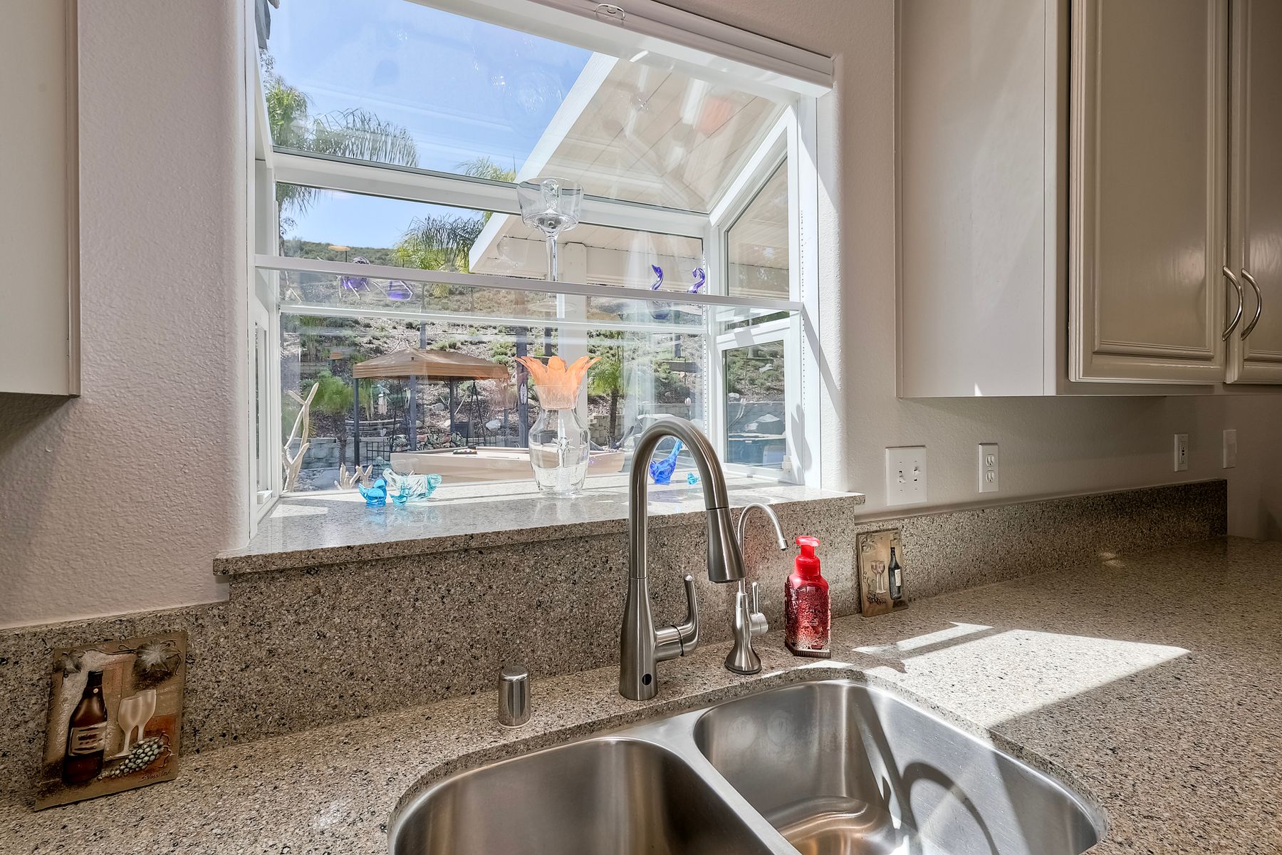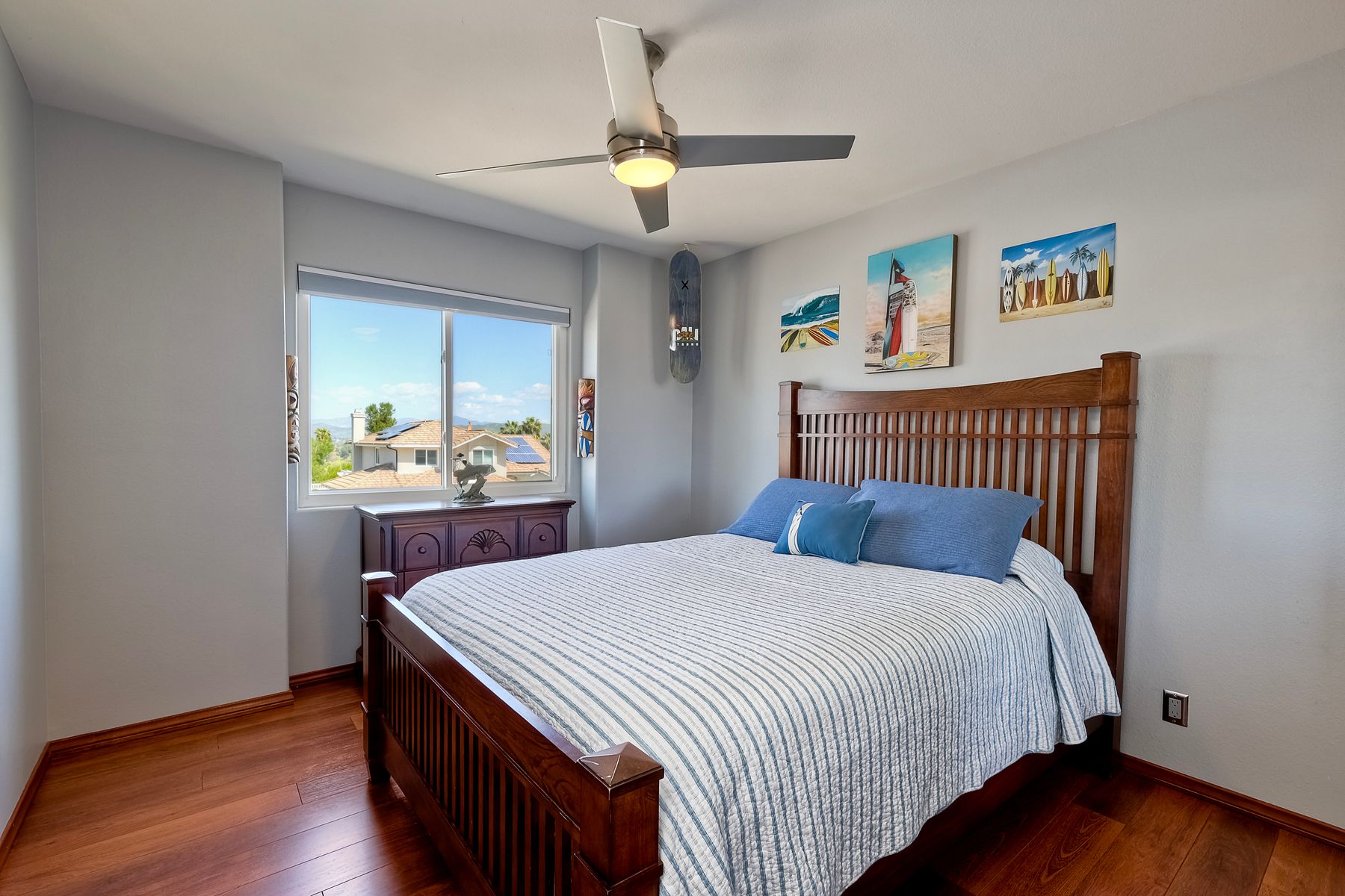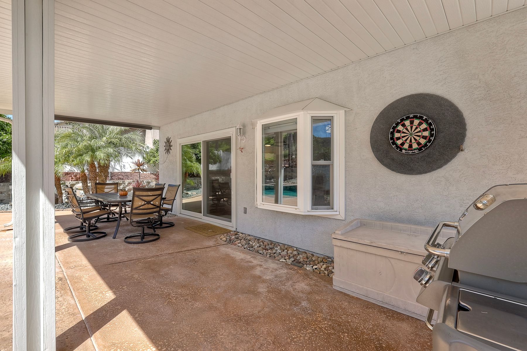 How can it get any better? Beyond turnkey 2,400 SqFt Home on .25 acre meticulously landscaped lot complete with pool/spa, fully owned solar, fruit trees and backing up to Cowles Mountain views!! If you have been seeking a home for your family that provides entertainment opportunities & memories which will last for years ~ you may well have found it! Offering 4 bedrooms (of which one is on entry level), PLUS an office (attached to Primary) and three FULL bathrooms (one on entry level). This open floorplan encourages everyone to share time and space together yet also offers privacy when one needs it. The interior: tastefully upgraded with colors and finishes that are sure to please the most particular of buyers. Kitchen and all three bathrooms have been renovated in neutral tones and impeccable finishes. Cherry laminate flooring - tasteful and easy to care for. The exterior: Designed with FUN in mind - this spacious backyard and pool will make your home the place that everyone wants to be!! ADDITIONAL benefits: FULLY OWNED solar panels. EV charger in the garage. Up-down blinds. Dual pane windows installed 15 years ago. NEW ROOF in 2018. 10-Year New HVAC. House exterior painted within last 5 years. Over-sized 3-car garage w/ ample storage and shelving. This home - situated in the very Southwest corner of Santee puts you close to freeway access, within 30 minutes of the airport, within 30 minutes of the coast, at the base of Cowles Mountain (for the adventurer in you). Just when you may have lost hope that the perfect home existed for you ~ 8513 Mesa Heights is here to restore that hope and waiting for you to start enjoying all the future has to offer!!