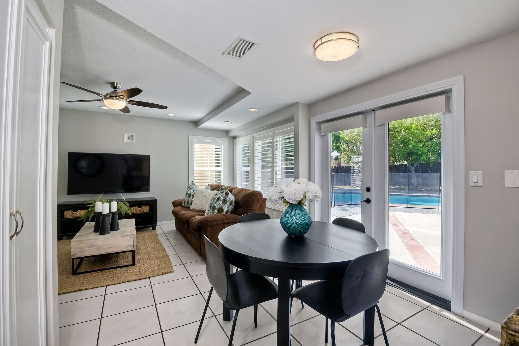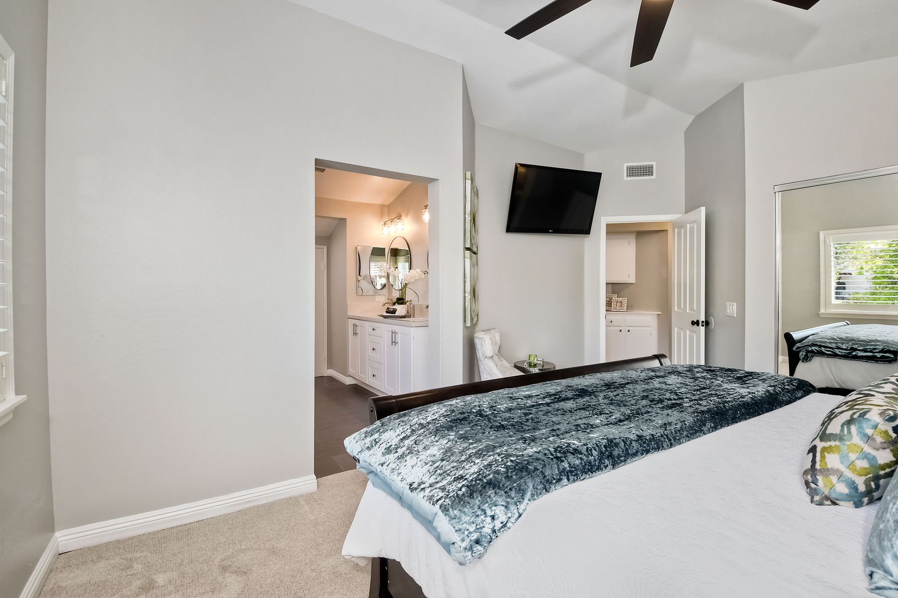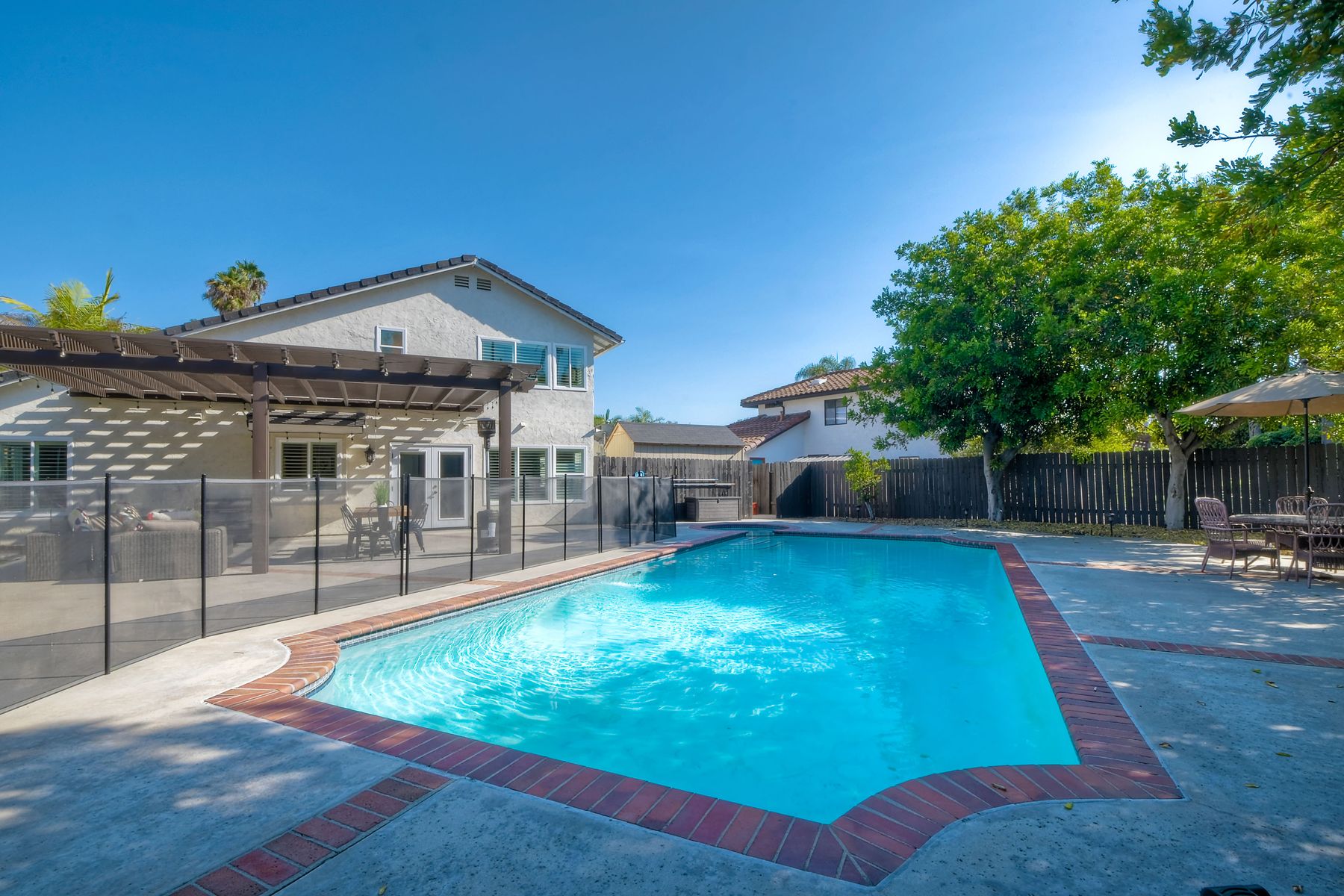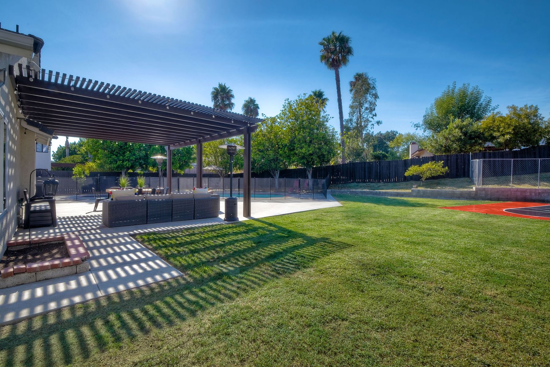 Welcome to your own private oasis encouraging indoor-outdoor living at it's best at the end of a cul-de-sac! Entertainer's dream or simply relax under massive pergola or in the refreshing pool. Versatile backyard basketball/sport court and still plenty of grassy open space to spare. Perfect home for a staycation! Move-in ready as inside you'll find that all 3 bathrooms have been beautifully remodeled, new carpet installed and just painted the best "greige" to accompany any color scheme. Home has paid in full solar, effective central AC, upgraded energy efficient windows with gorgeous plantation shutters for additional efficiency. 3+ cars easily fit in driveway outside your spacious 3 car garage, and since no HOA so allows use of garage as an extended rec room. Large Alamosa Park is just a block away, and 4.5 miles of hiking trails at nearby Guajome Park. Alamosa Park Elementary is close enough to avoid frustration drop off/pick up lines adding time to your busy day. What's not to love? NO HOA & NO Mello Roos!!!
