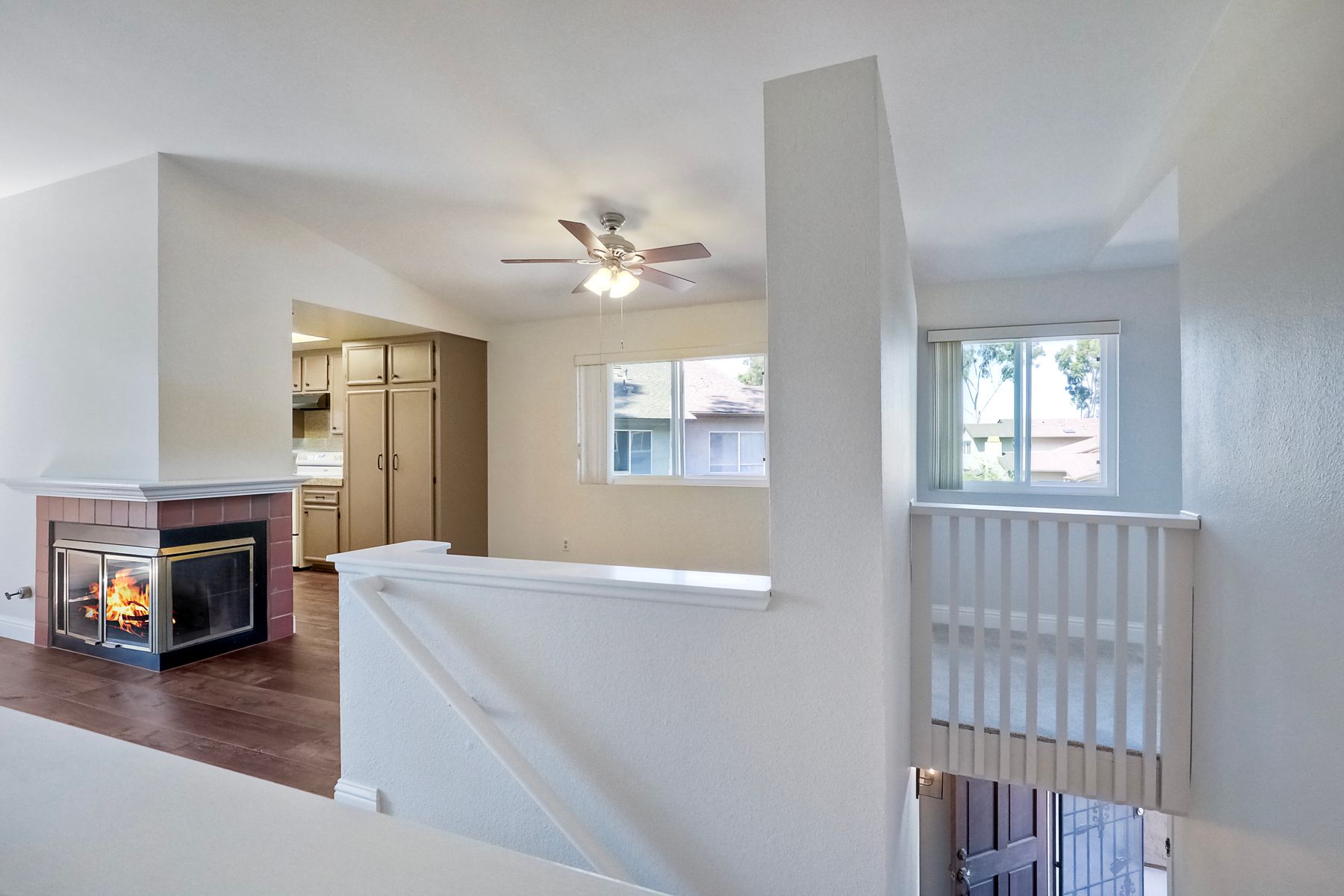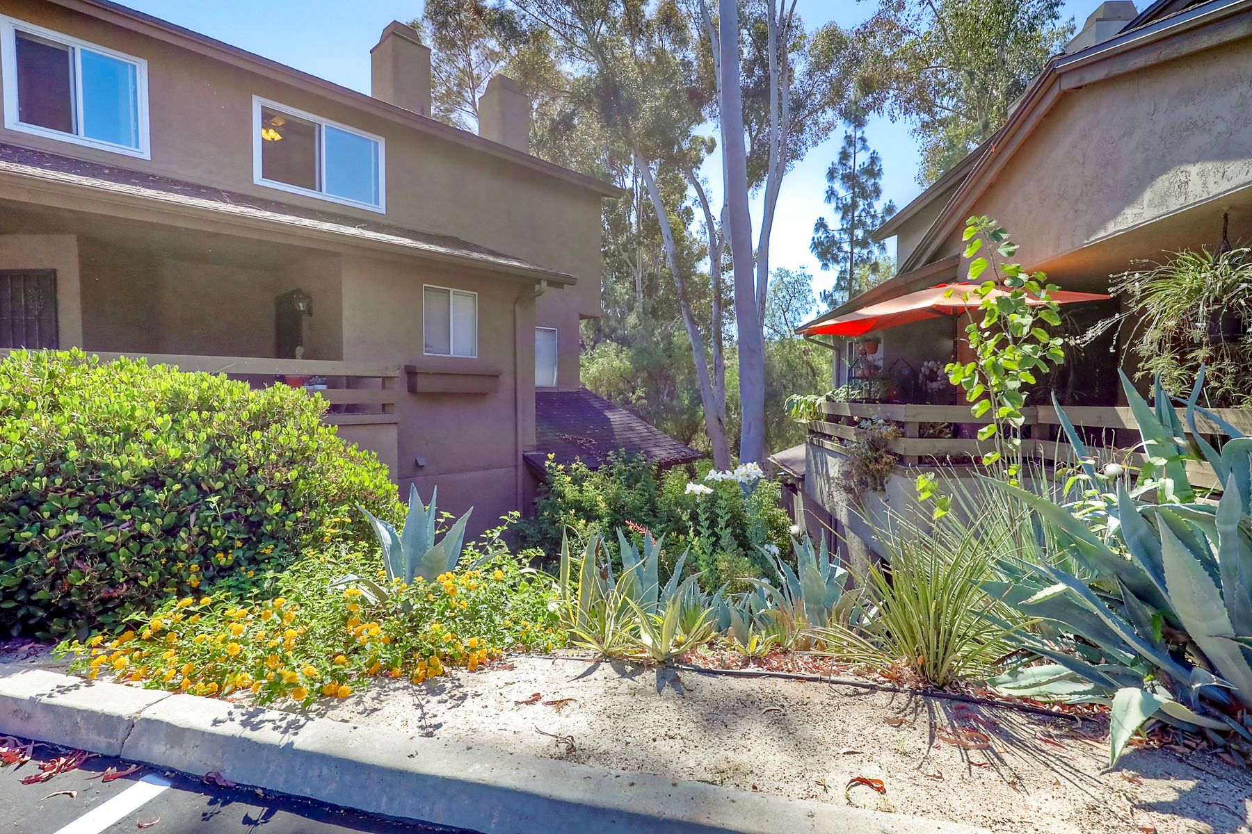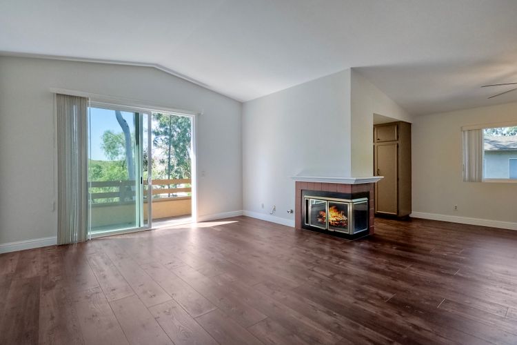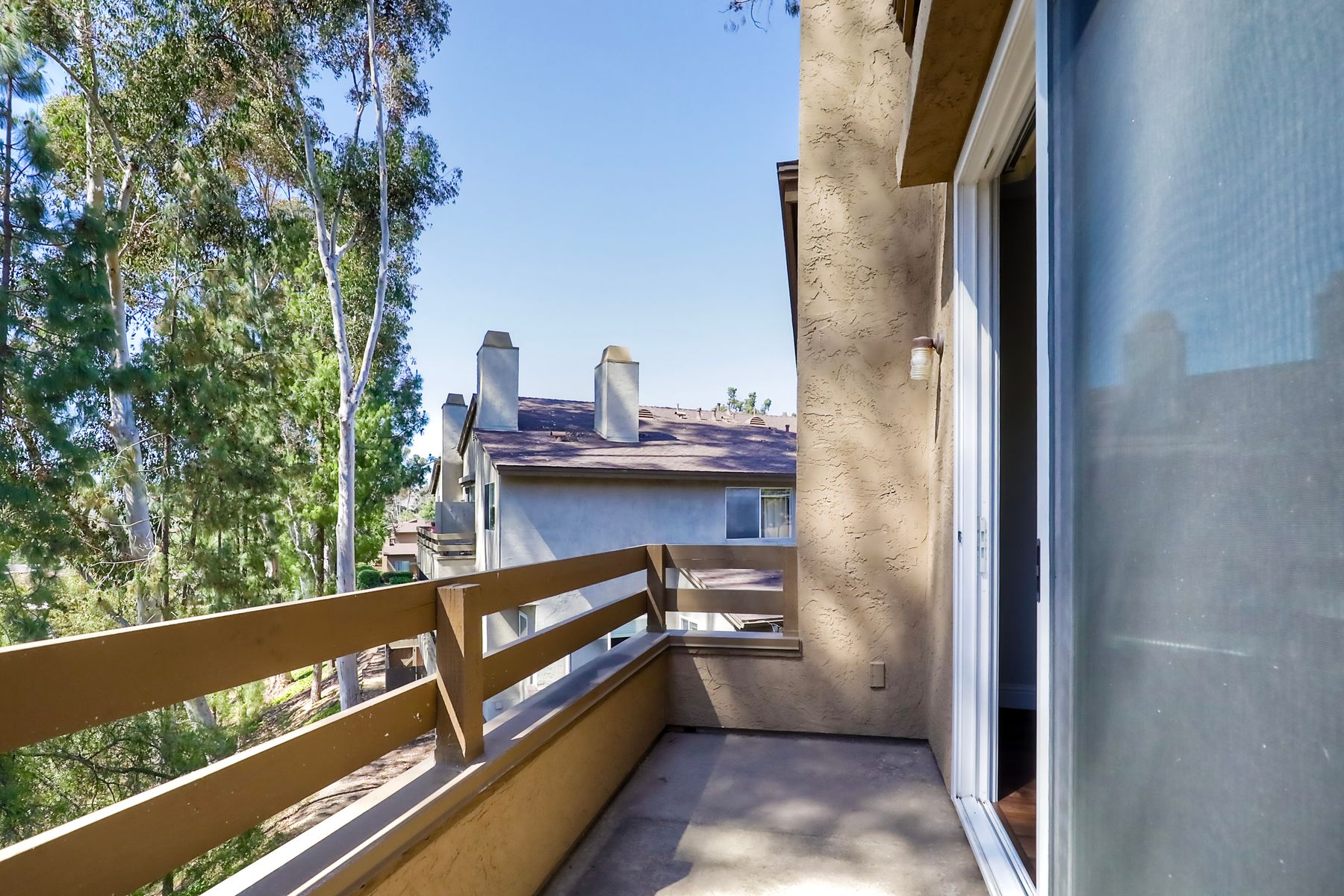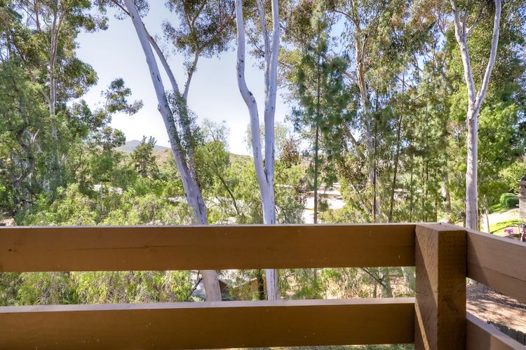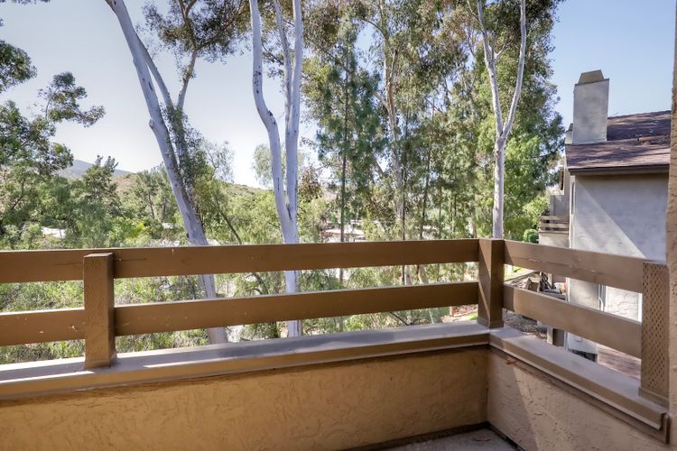 Rarely available floor plan E in highly sought after Highland Trails in West Santee. This 1233sf upper end unit with 2br and 2ba is walking distance to Mission Trails Park. Vaulted ceilings add to the spacious, light and airy feel. Treetop views from the great room, deck and kitchen will wow you. Nice cross breezes and bird watching in this natural setting. Move in ready with newer vinyl plank, double pane windows and fresh paint. Lives like a single story with all bedrooms and living areas upstairs. Downstairs is entry and 1 car attached garage, an additional assigned spot and visitor parking is close by. Great community amenities. Location is ideal with easy access to freeways, shopping and dining.
