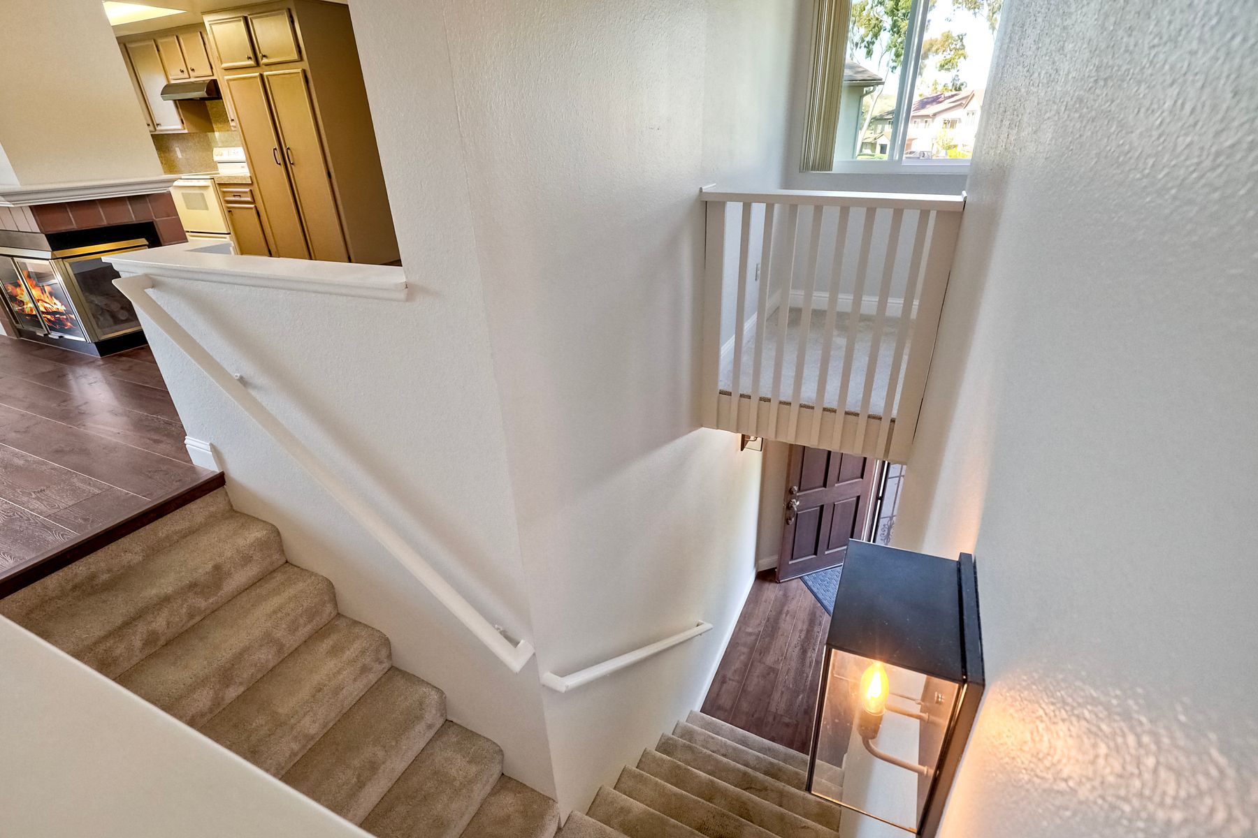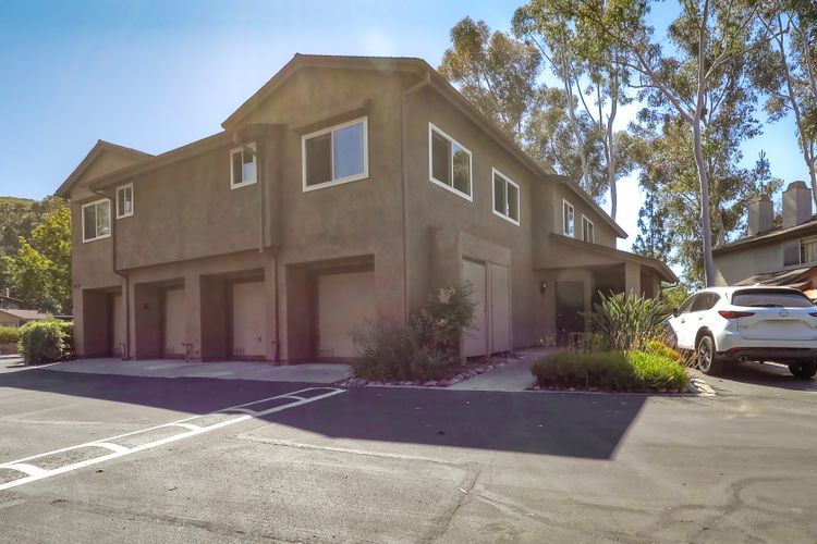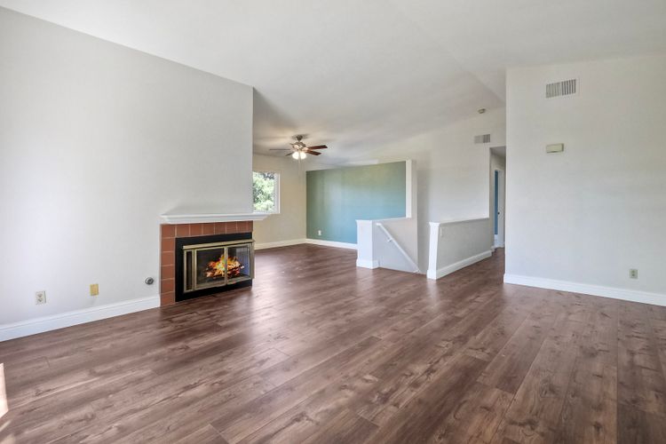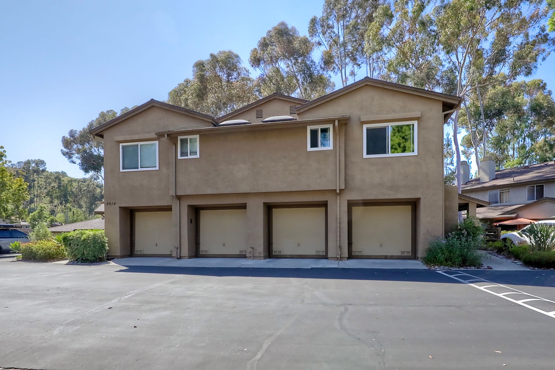 Rarely available floor plan E in highly sought after Highland Trails in West Santee. This 1233sf upper end unit with 2br and 2ba is walking distance to Mission Trails Park. Vaulted ceilings add to the spacious, light and airy feel. Treetop views from the great room, deck and kitchen will wow you. Nice cross breezes and bird watching in this natural setting. Move in ready with newer vinyl plank, double pane windows and fresh paint. Lives like a single story with all bedrooms and living areas upstairs. Downstairs is entry and 1 car attached garage, an additional assigned spot and visitor parking is close by. Great community amenities. Location is ideal with easy access to freeways, shopping and dining.