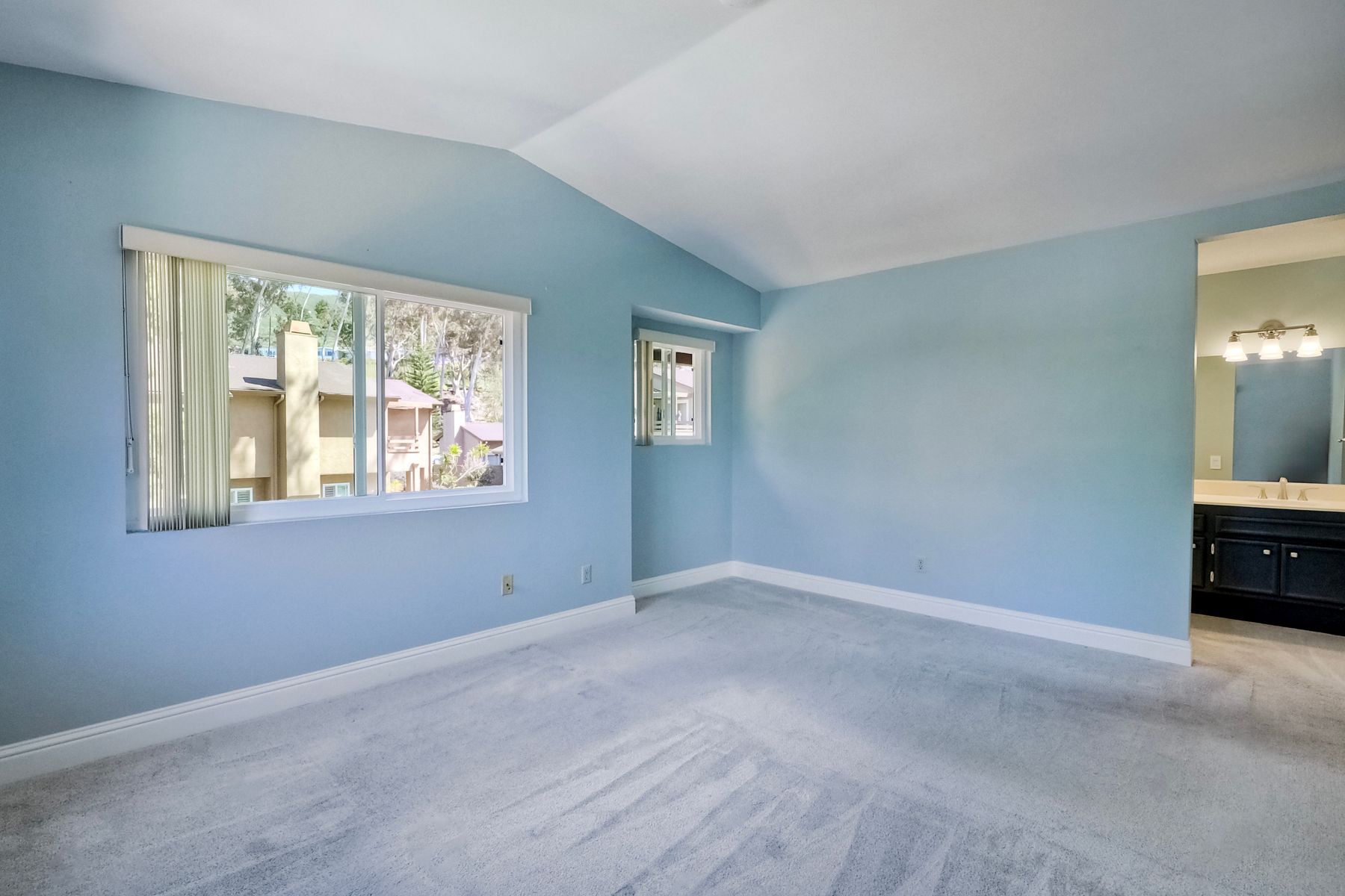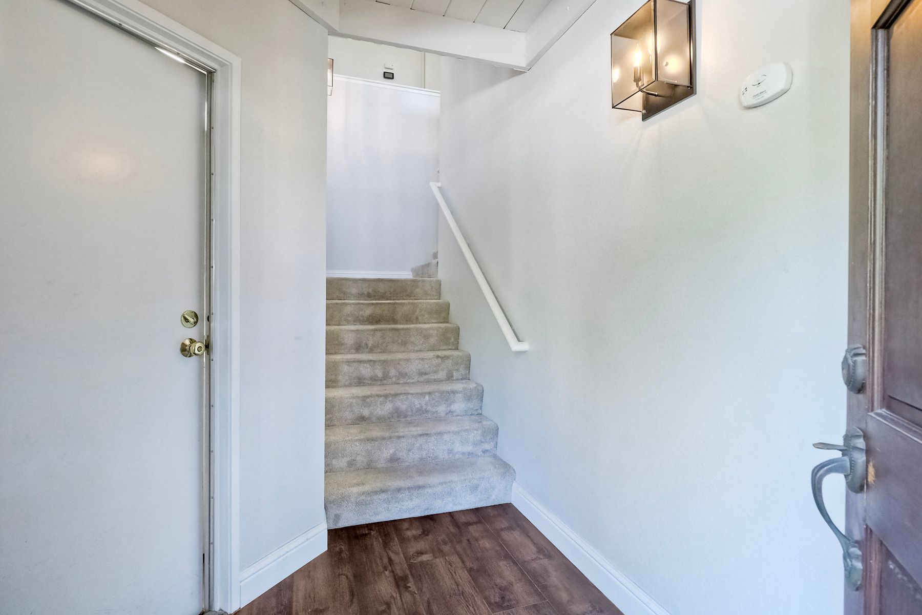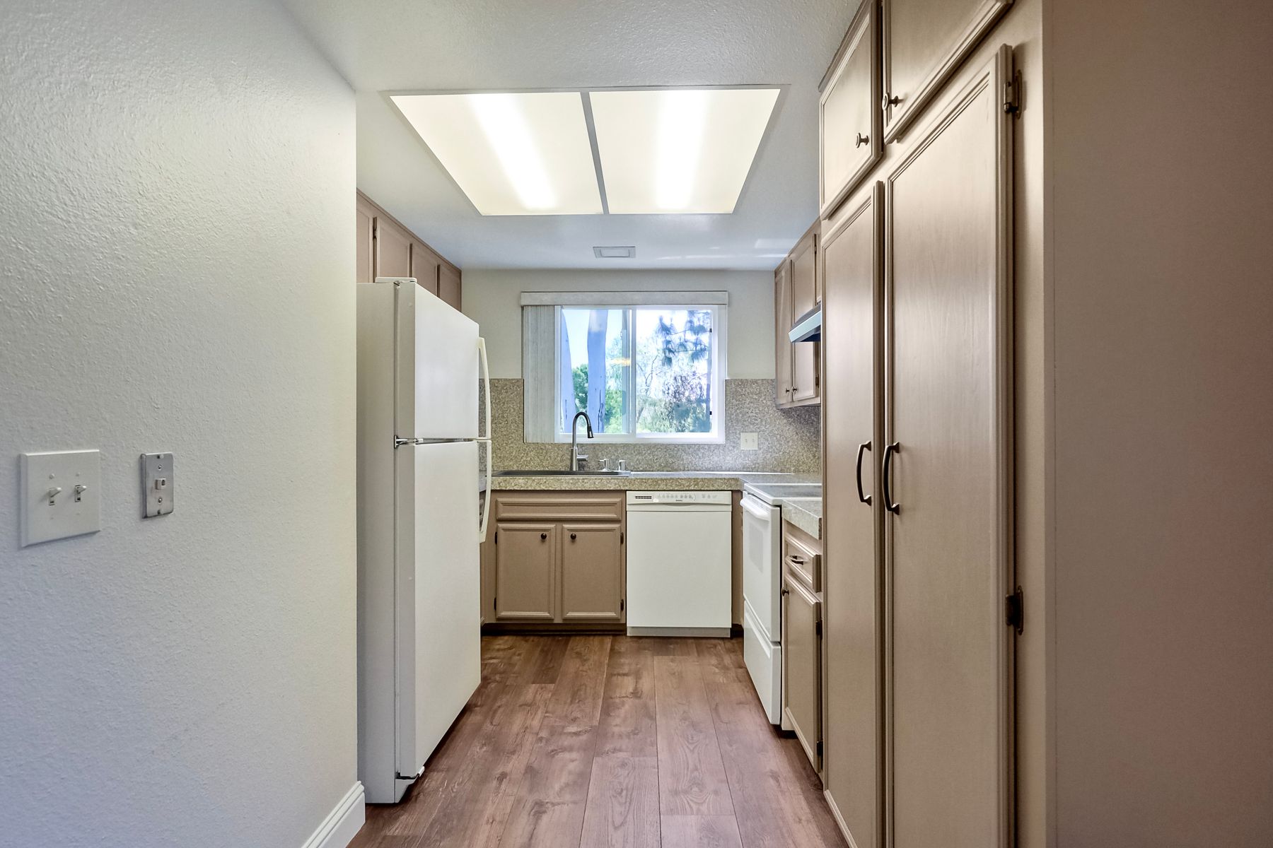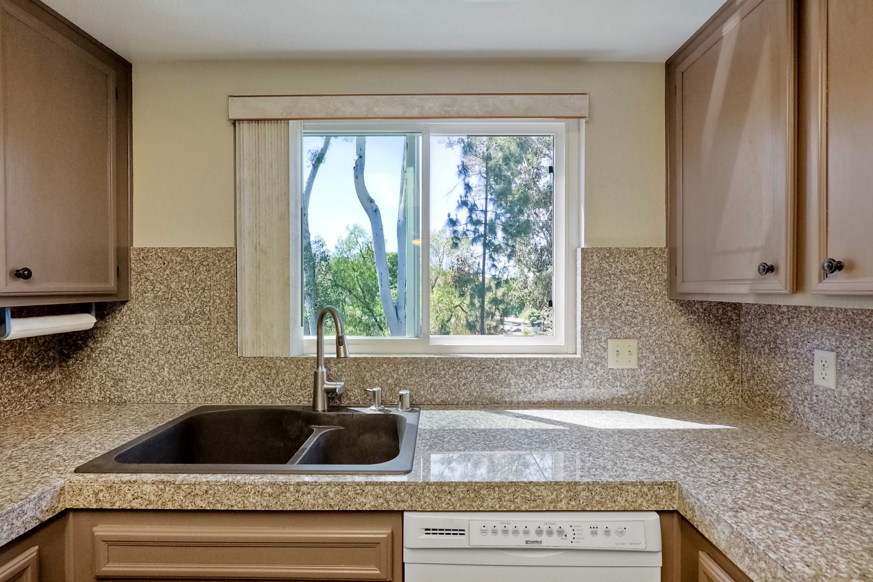 Rarely available floor plan E in highly sought after Highland Trails in West Santee. This 1233sf upper end unit with 2br and 2ba is walking distance to Mission Trails Park. Vaulted ceilings add to the spacious, light and airy feel. Treetop views from the great room, deck and kitchen will wow you. Nice cross breezes and bird watching in this natural setting. Move in ready with newer vinyl plank, double pane windows and fresh paint. Lives like a single story with all bedrooms and living areas upstairs. Downstairs is entry and 1 car attached garage, an additional assigned spot and visitor parking is close by. Great community amenities. Location is ideal with easy access to freeways, shopping and dining.