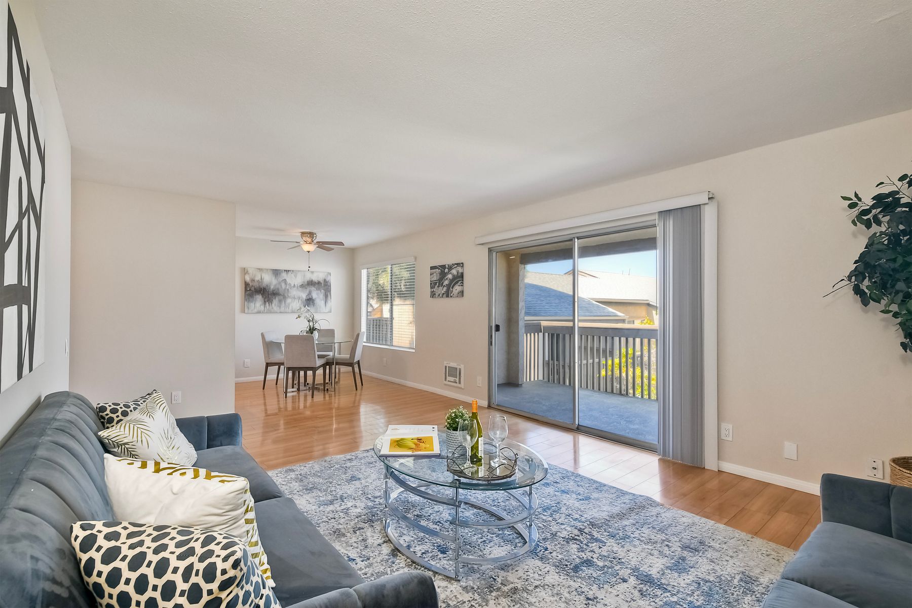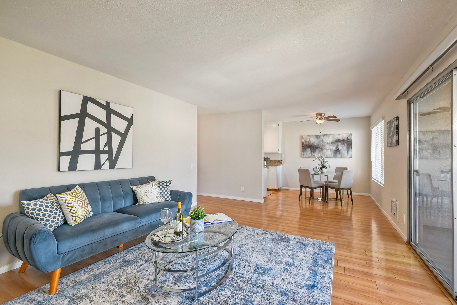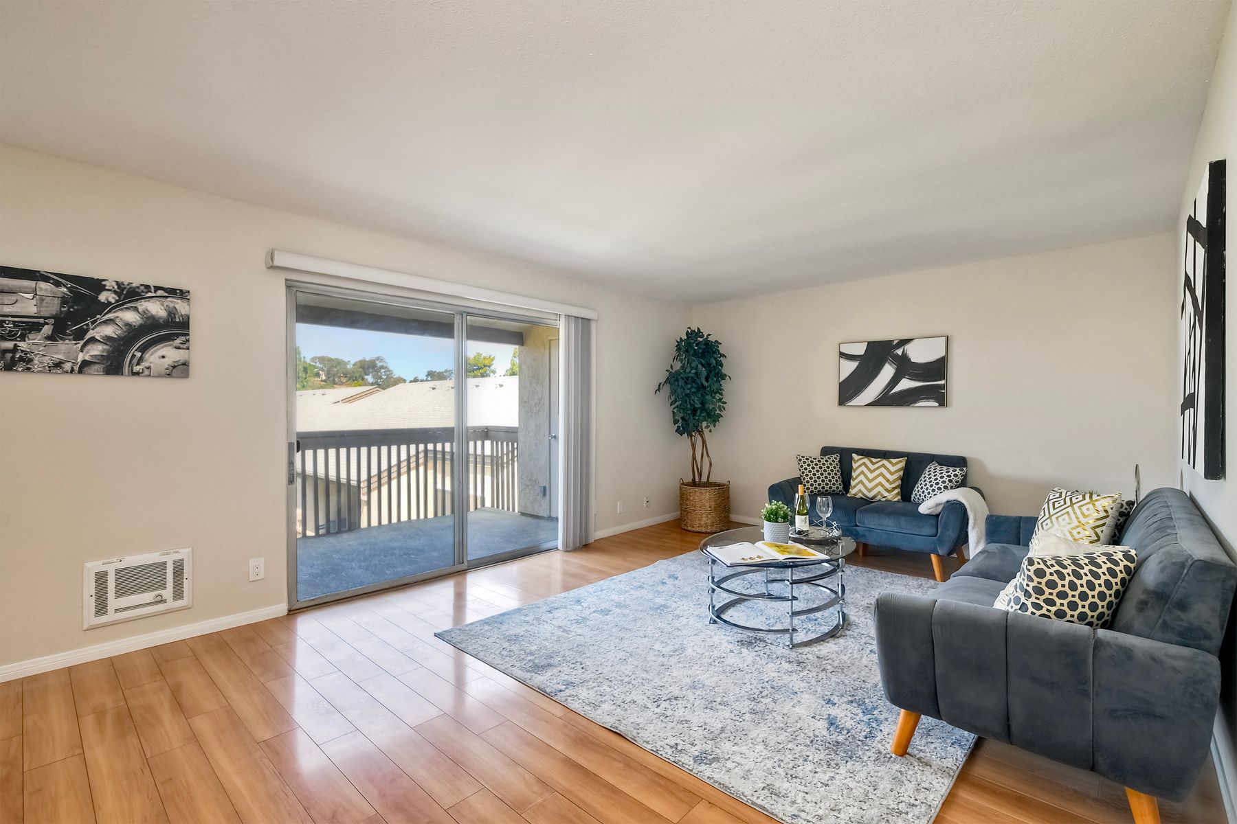 New Improved Price! Relax and unwind while enjoying this westward facing upper unit in the sought after Villa La Jolla complex. Conveniently located near shopping, dining, UCSD and access to the 5 freeway. Light & Bright living room has Laminate floors with direct access to the balcony. Kitchen has ceramic tile floors, quartz counter tops and recessed lighting. Bathroom has new porcelain tile floors, new fixtures with a seamless tub/shower surround with newer vanity and quartz countertop. Floor-to-ceiling Mirrored wardrobe doors in bedroom and hallway provide light and ample storage for all your needs. Live the active style with the resort like amenities including 2 pools, large clubhouse, fitness center, multiple laundry facilities, BBQ grills with outdoor seating.
