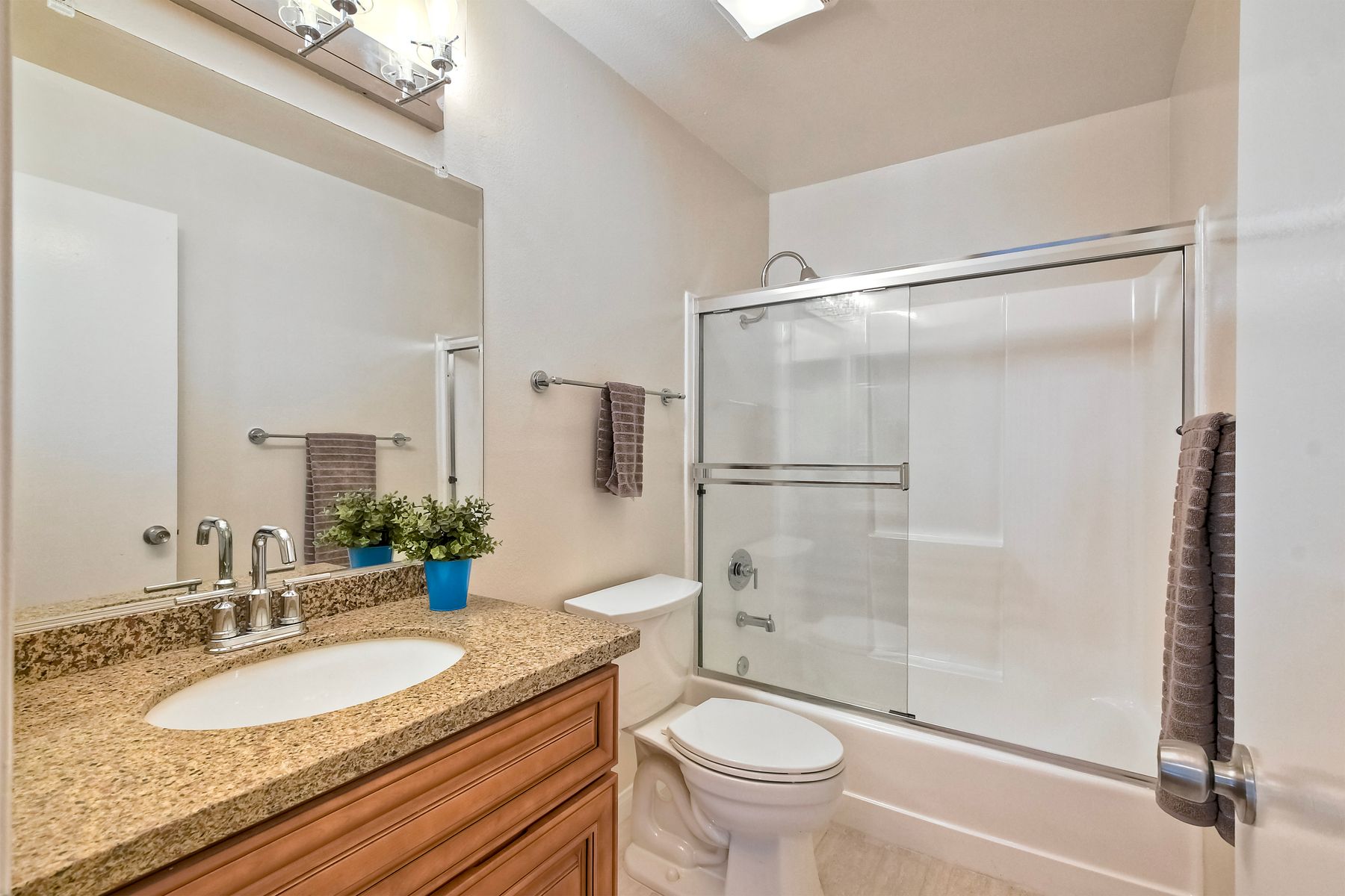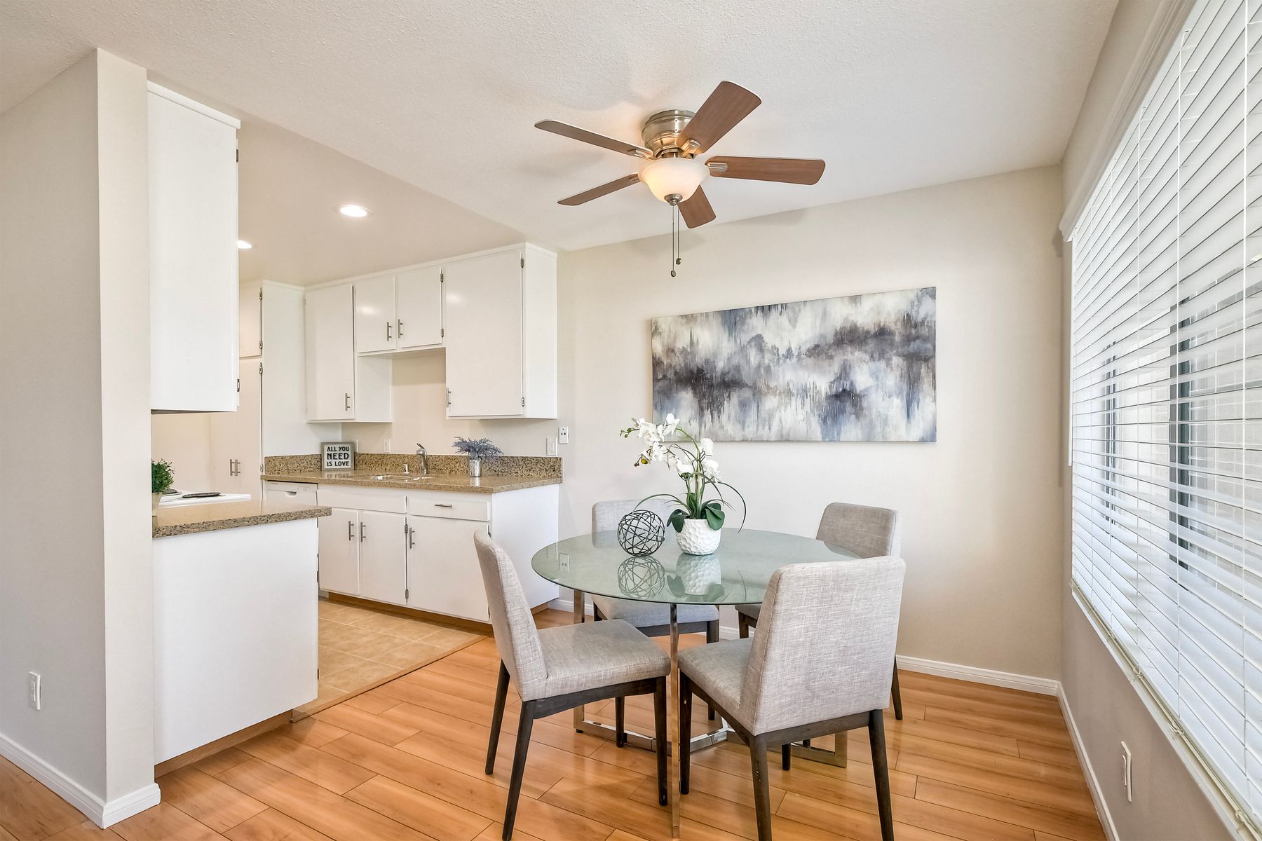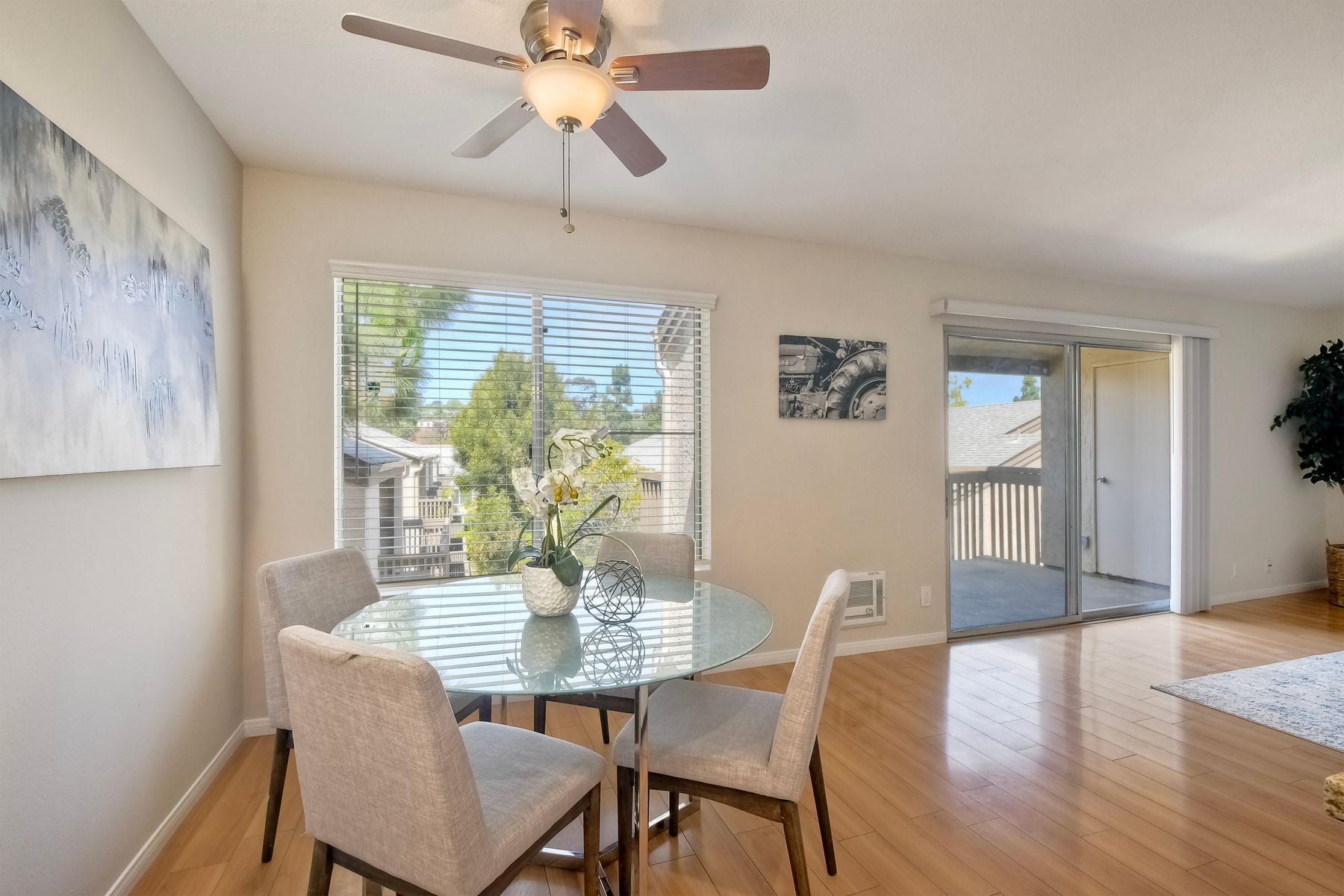 New Improved Price! Relax and unwind while enjoying this westward facing upper unit in the sought after Villa La Jolla complex. Conveniently located near shopping, dining, UCSD and access to the 5 freeway. Light & Bright living room has Laminate floors with direct access to the balcony. Kitchen has ceramic tile floors, quartz counter tops and recessed lighting. Bathroom has new porcelain tile floors, new fixtures with a seamless tub/shower surround with newer vanity and quartz countertop. Floor-to-ceiling Mirrored wardrobe doors in bedroom and hallway provide light and ample storage for all your needs. Live the active style with the resort like amenities including 2 pools, large clubhouse, fitness center, multiple laundry facilities, BBQ grills with outdoor seating.