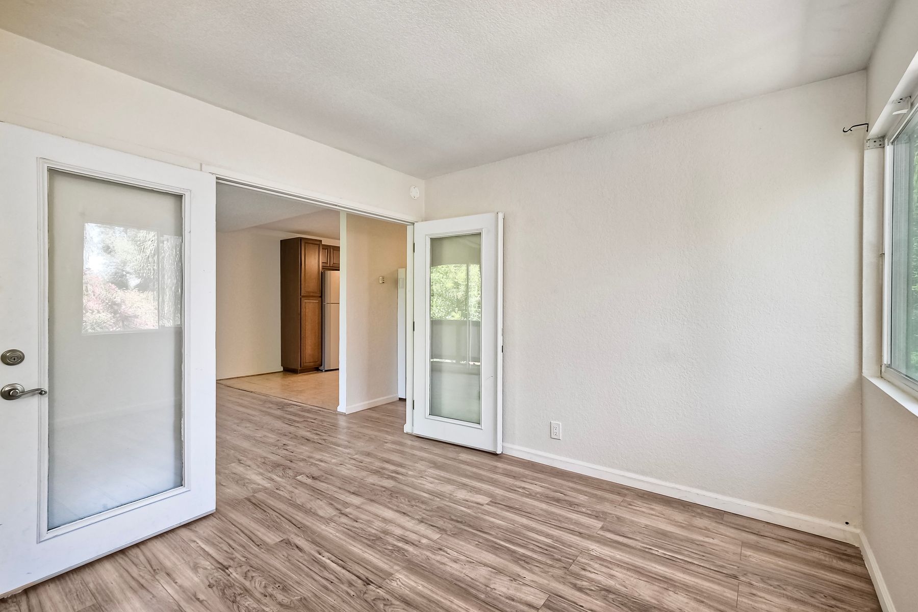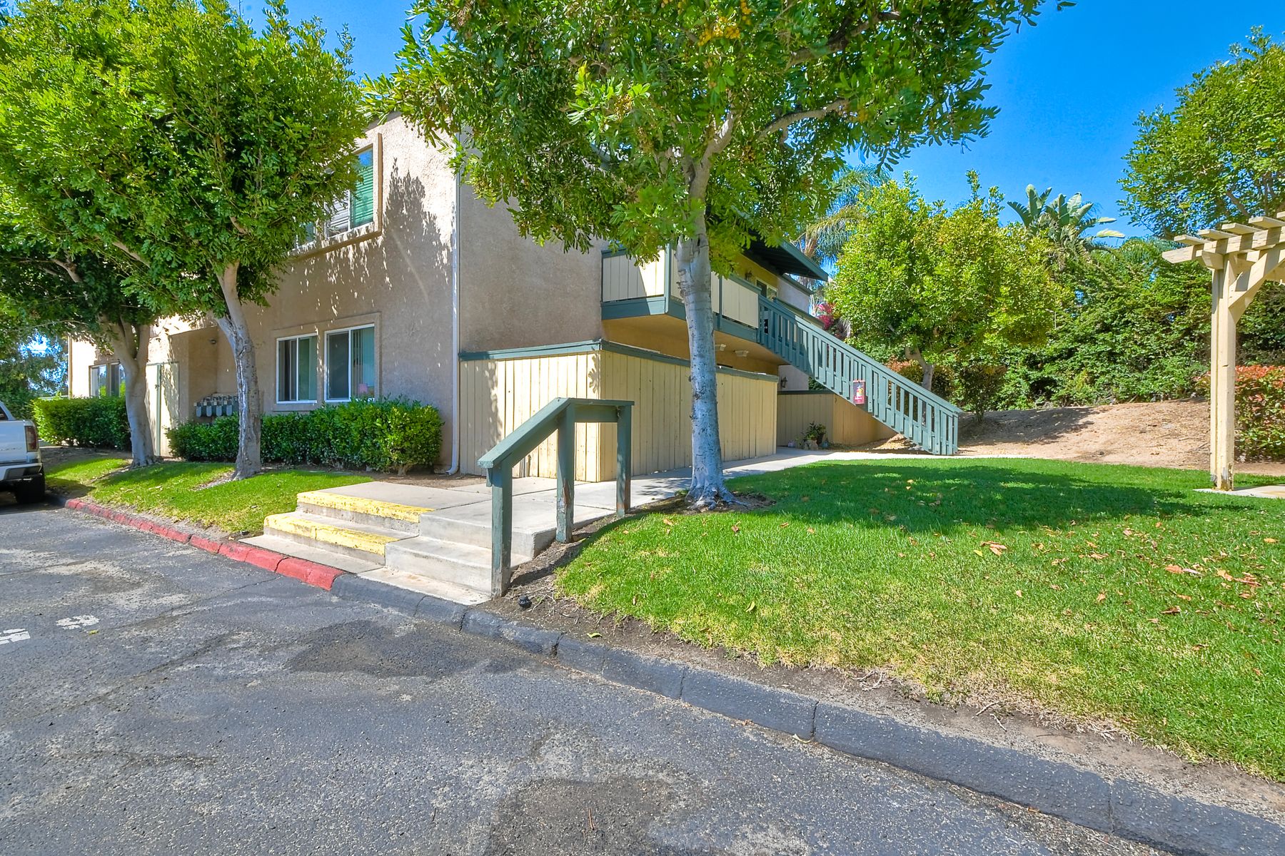 Welcome to this lovely, 2 bedroom upper corner condo situated in a serene neighborhood at The Oaks! As you step into the living room, you are greeted by an inviting & open floor plan. The kitchen features ceiling fan, granite countertops, USB outlet, tiled backsplash, stainless steel appliances: stove, dishwasher, refrigerator & microwave. The primary room has large walk-in closet. You'll appreciate the versatile bonus/optional bedroom with French doors (no closet), that may be used as a home office, guest room, media room or gym. Take in the beautiful views from your balcony patio & feel the breeze! The Oaks is a pet friendly Fallbrook community that offers resort-style amenities for everyone: plunge in the swimming pool, relax in the spa, explore the playground, enjoy a picnic on the large shady lawn or go on a hike taking in the majestic mountain views. Best of all, HOA fee includes water, limited insurance, trash & sewer! Complex offers two assigned parking spots #67 & #58 for this unit & a community laundry for your convenience. Great for VA, first time home buyer or an investor seeking a 1031 exchange, this is a great opportunity for you! This home may qualify for several 3% down programs & 1st Time Home Buyer Programs (Ask about the $10K & $30k Grant Programs)! Stop renting & make it reality to own your home! Don't delay, come view it today!