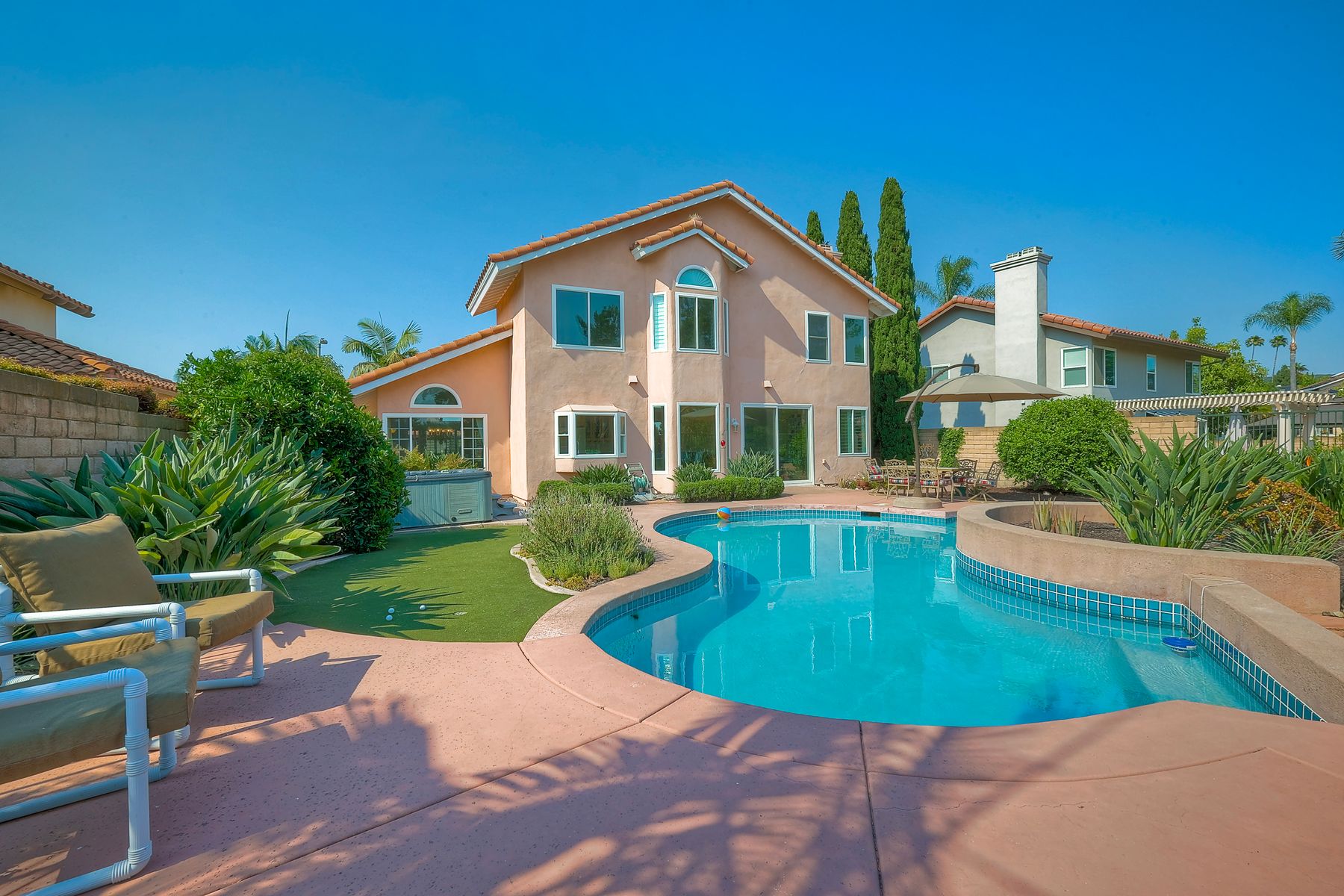 Stunning 5-Bedroom Home with $300,000 in Upgrades and Luxurious Amenities! Welcome to your dream home, nestled in a tranquil cul-de-sac with a private backyard that backs to serene open space. This immaculate 5-bedroom, 4-bathroom with bedroom and bathroom downstairs home has been meticulously upgraded with over $300,000 in high-end enhancements, ensuring a lifestyle of comfort and sophistication. Some of the upgrades - New double pane windows, new cabinets in kitchen and bathrooms, New counters in kitchen and baths, New Roof, New energy efficient HVAC system, Crown molding, plantation shutters, laminate floors, 3 car garage with epoxy floors, entire plumbing system epoxy lined, energy efficient gas hot water heater, Putting green. This exceptional property offers the best in both indoor and outdoor living. Whether you're hosting friends, enjoying family time, or seeking a peaceful retreat, this home has it all. Schools are Westview High Mesa Verde middle Deer canyon elementary Front Door faces North.