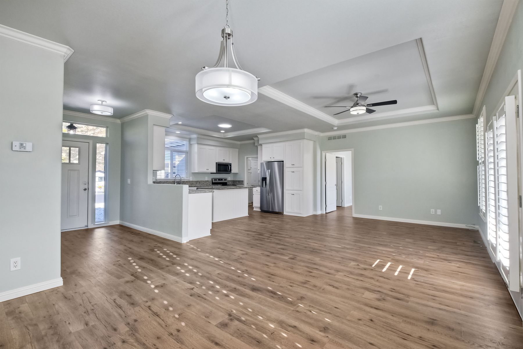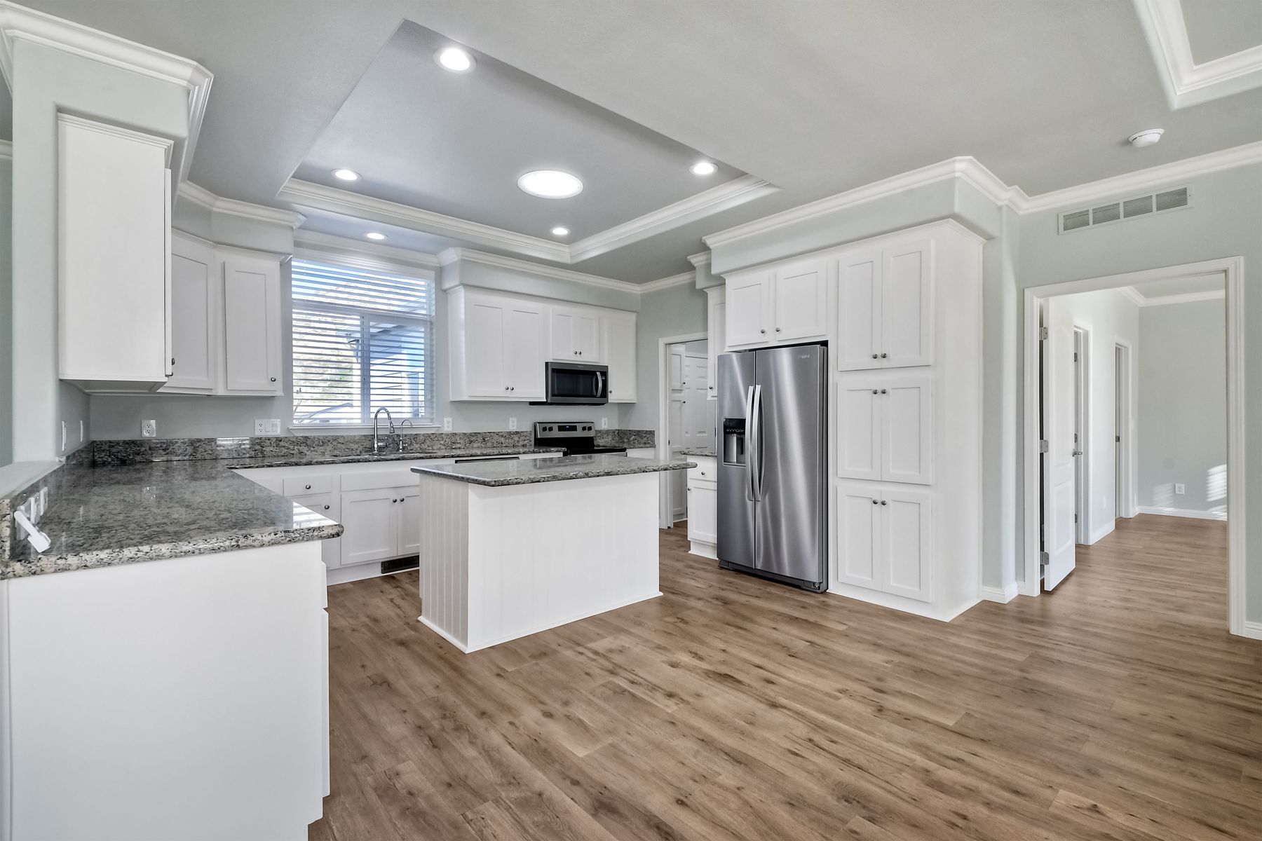 Top of the Hill! Beautifully updated & ready to move in! Panoramic views on private, prime cul-de-sac location! New Pergo wood flooring, new luxury vinyl insulated flooring in both bathroom, carpeting in 2nd & 3rd bedrooms, new appliances & refinished cabinetry throughout! New custom plantation shutters and blinds throughout. Large master bedroom with gorgeous 9 X 13 bath area, double sink vanity, oversized soaking tub and separate walk in shower. New toilets, new sinks and new towels bars installed in both baths. Attached 2 car garage with direct access to the home, has two 4 X8 ceiling storage racks. This home shows like a model home ! Gated community.