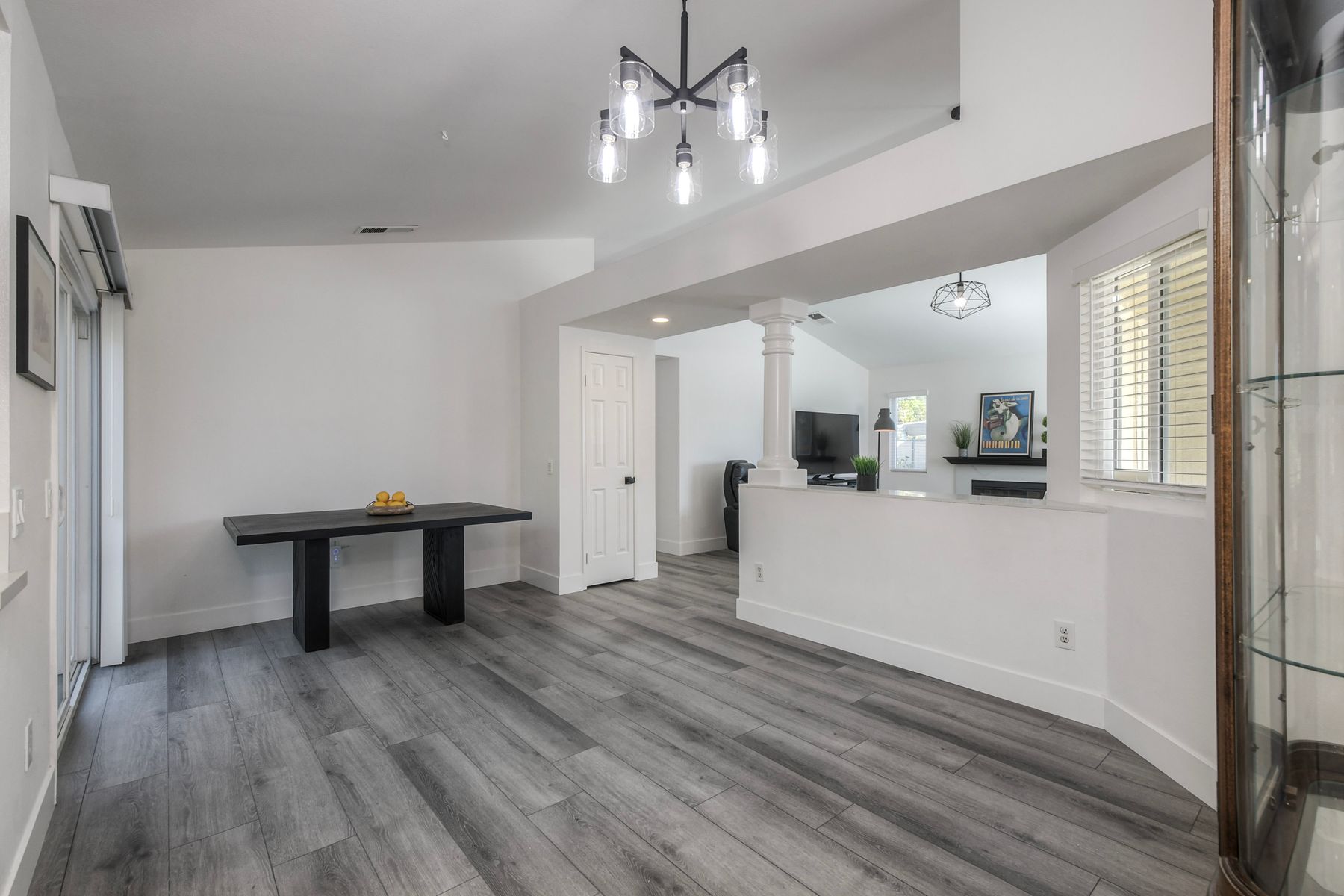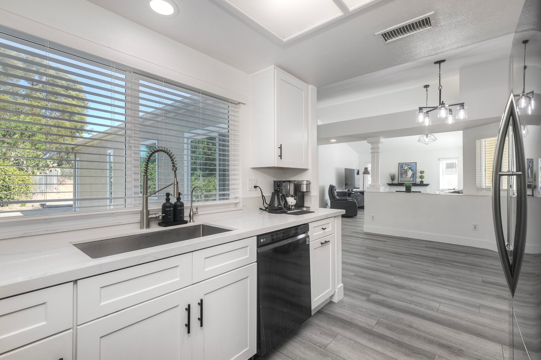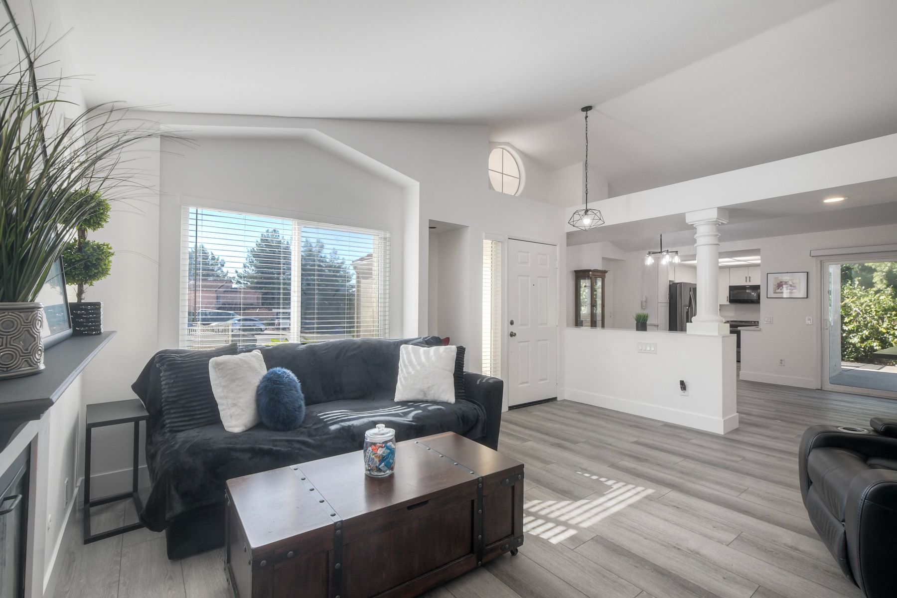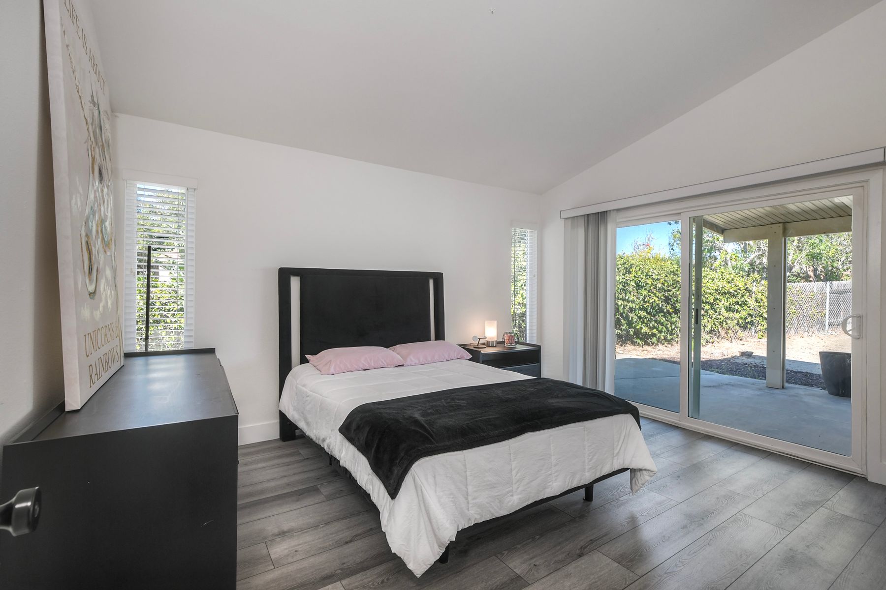 Tucked away at the end of a quiet cul-de-sac, this immaculate 3-bedroom, 2-bath home offers the perfect blend of comfort, style, and functionality. With over 17,000 square feet of lot space, the possibilities are endless—whether you're dreaming of building an ADU, adding a pool, setting up a workshop, or parking your RV, this property can accommodate it all. Inside, the home is move-in ready, featuring newly updated bathrooms, an upgraded kitchen, and beautiful laminate flooring throughout. The spacious living room is centered around a cozy fireplace, creating a warm and welcoming space for gatherings. The home is designed for modern living, with dual-pane windows for energy efficiency, central A/C for year-round comfort, and leased solar panels to help keep energy costs down. The open kitchen boasts contemporary finishes and flows seamlessly into the dining and living areas—ideal for entertaining or everyday family life. The bedrooms are generously sized, and the primary suite offers serene backyard views, giving you a front-row seat to nature with visits from local birds, raccoons, and other wildlife. Step outside to your private backyard oasis, where a covered patio invites al fresco dining and relaxation. A view deck sits at the back of the property, providing a peaceful retreat to enjoy sunsets, wildlife, or your morning coffee. The oversized lot also includes drive-through access, making it easy to bring in vehicles, tools, or equipment. With parking for at least four additional cars, hosting friends and family is a breeze.