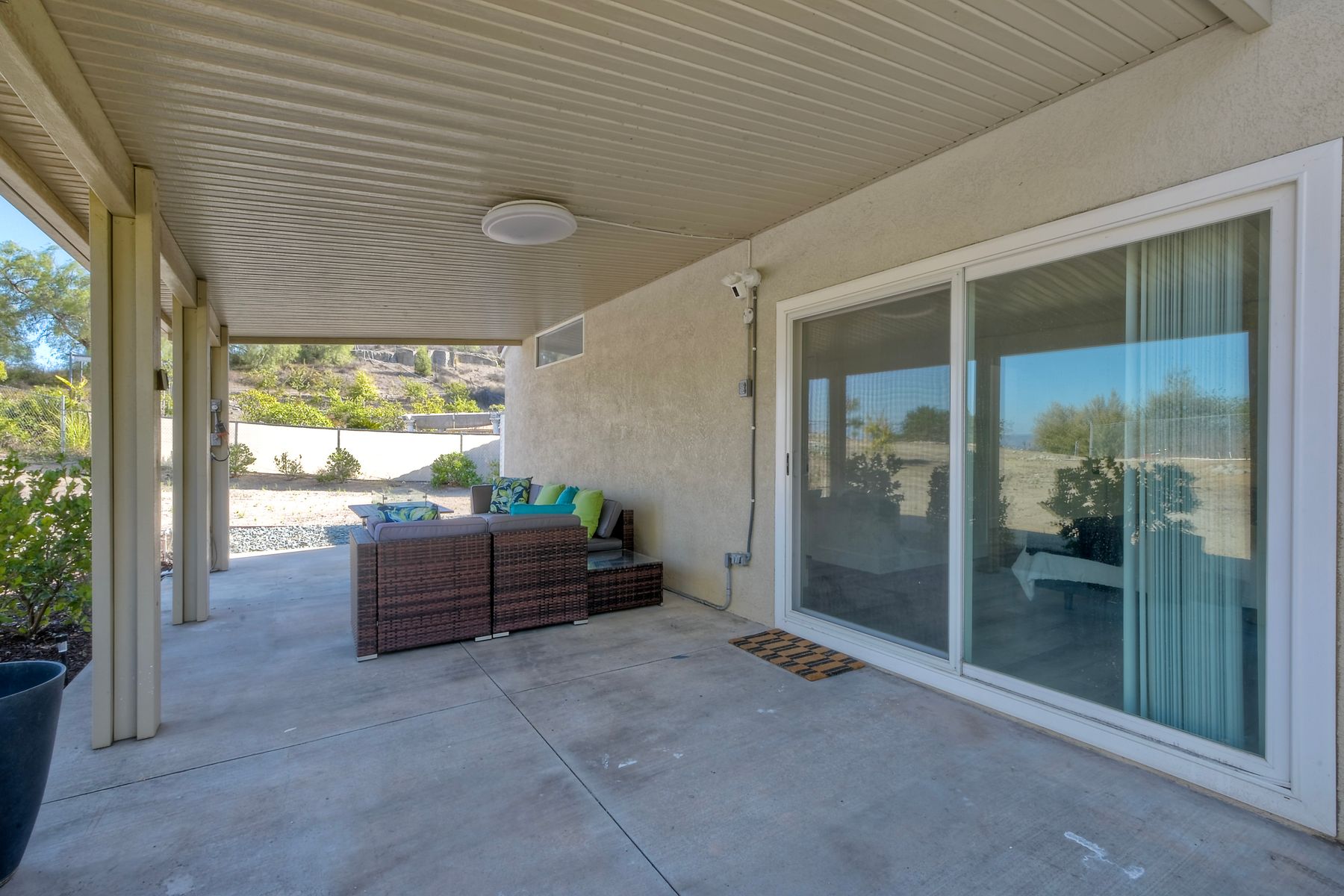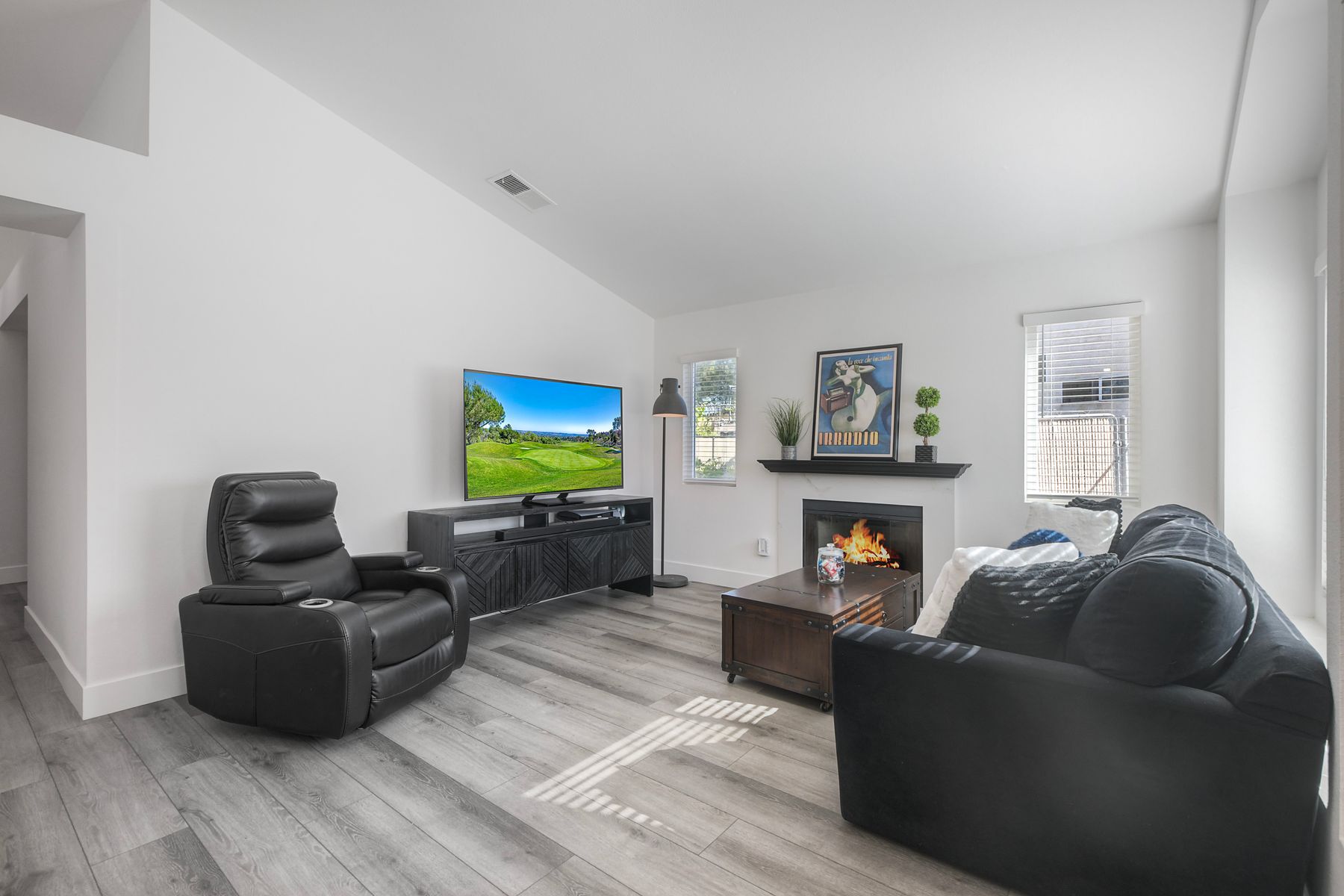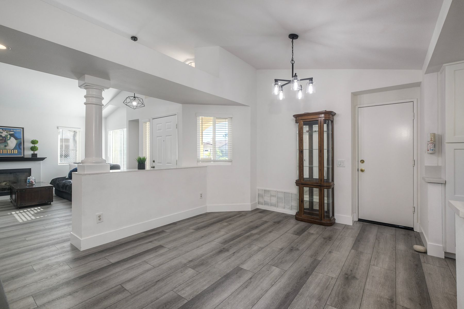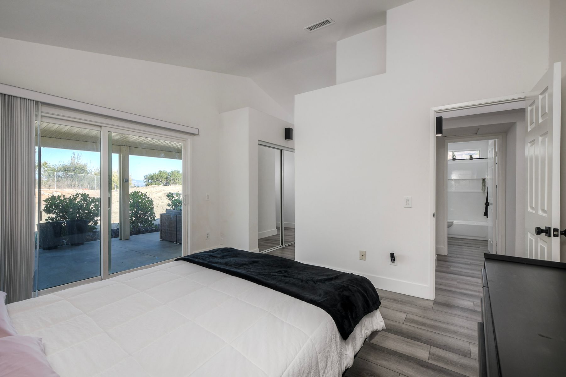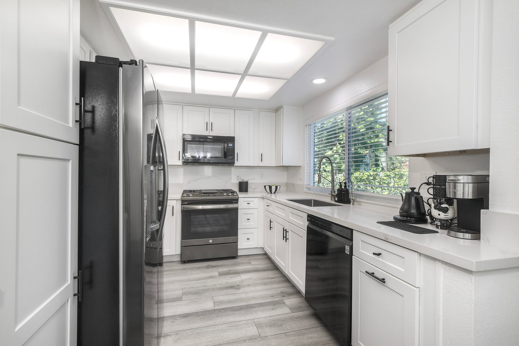 Tucked away at the end of a quiet cul-de-sac, this immaculate 3-bedroom, 2-bath home offers the perfect blend of comfort, style, and functionality. With over 17,000 square feet of lot space, the possibilities are endless—whether you're dreaming of building an ADU, adding a pool, setting up a workshop, or parking your RV, this property can accommodate it all. Inside, the home is move-in ready, featuring newly updated bathrooms, an upgraded kitchen, and beautiful laminate flooring throughout. The spacious living room is centered around a cozy fireplace, creating a warm and welcoming space for gatherings. The home is designed for modern living, with dual-pane windows for energy efficiency, central A/C for year-round comfort, and leased solar panels to help keep energy costs down. The open kitchen boasts contemporary finishes and flows seamlessly into the dining and living areas—ideal for entertaining or everyday family life. The bedrooms are generously sized, and the primary suite offers serene backyard views, giving you a front-row seat to nature with visits from local birds, raccoons, and other wildlife. Step outside to your private backyard oasis, where a covered patio invites al fresco dining and relaxation. A view deck sits at the back of the property, providing a peaceful retreat to enjoy sunsets, wildlife, or your morning coffee. The oversized lot also includes drive-through access, making it easy to bring in vehicles, tools, or equipment. With parking for at least four additional cars, hosting friends and family is a breeze.