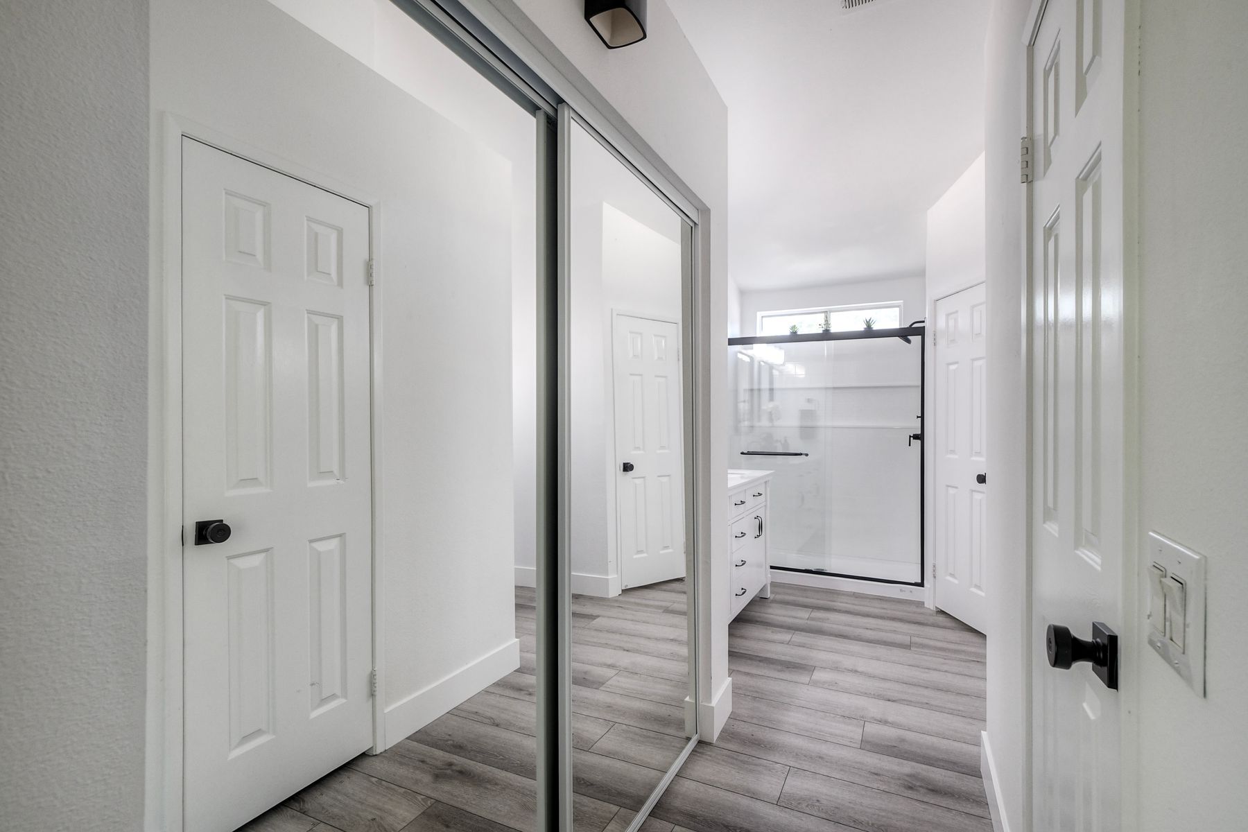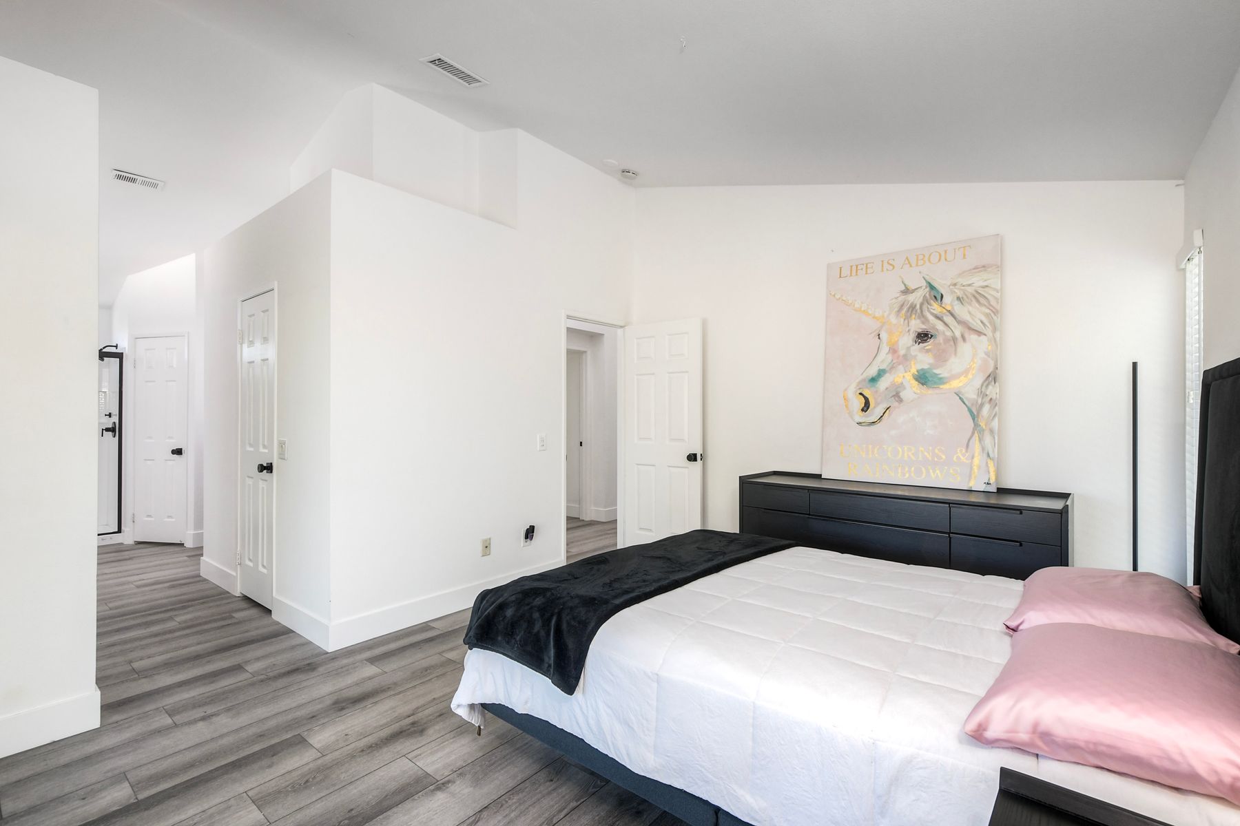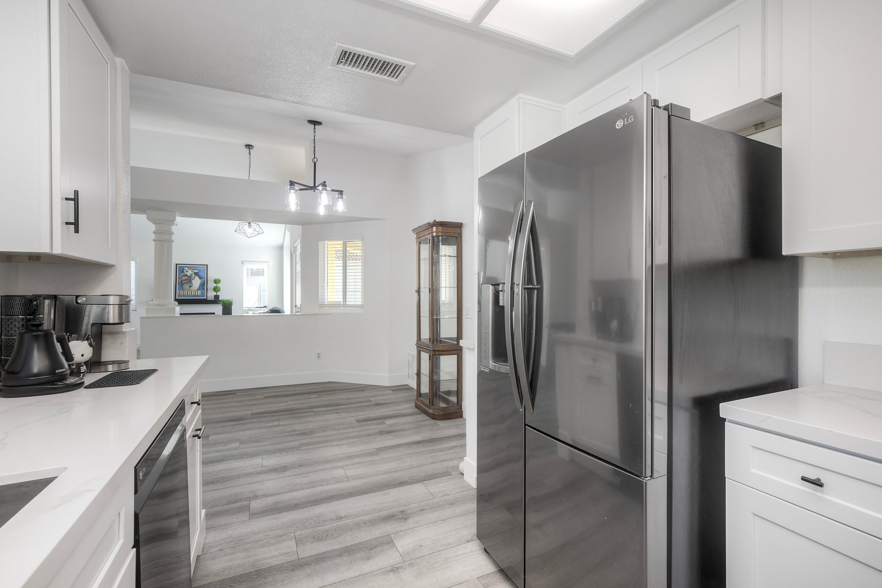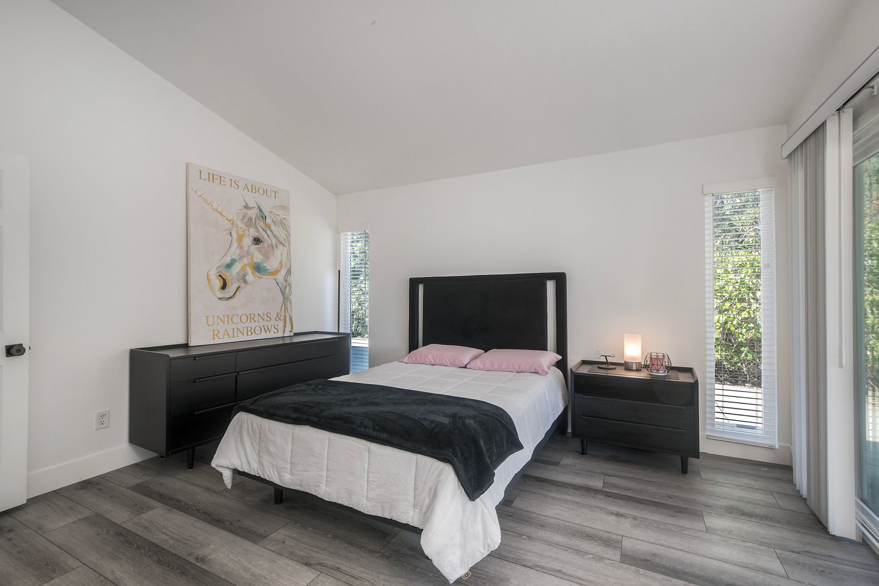 Tucked away at the end of a quiet cul-de-sac, this immaculate 3-bedroom, 2-bath home offers the perfect blend of comfort, style, and functionality. With over 17,000 square feet of lot space, the possibilities are endless—whether you're dreaming of building an ADU, adding a pool, setting up a workshop, or parking your RV, this property can accommodate it all. Inside, the home is move-in ready, featuring newly updated bathrooms, an upgraded kitchen, and beautiful laminate flooring throughout. The spacious living room is centered around a cozy fireplace, creating a warm and welcoming space for gatherings. The home is designed for modern living, with dual-pane windows for energy efficiency, central A/C for year-round comfort, and leased solar panels to help keep energy costs down. The open kitchen boasts contemporary finishes and flows seamlessly into the dining and living areas—ideal for entertaining or everyday family life. The bedrooms are generously sized, and the primary suite offers serene backyard views, giving you a front-row seat to nature with visits from local birds, raccoons, and other wildlife. Step outside to your private backyard oasis, where a covered patio invites al fresco dining and relaxation. A view deck sits at the back of the property, providing a peaceful retreat to enjoy sunsets, wildlife, or your morning coffee. The oversized lot also includes drive-through access, making it easy to bring in vehicles, tools, or equipment. With parking for at least four additional cars, hosting friends and family is a breeze.