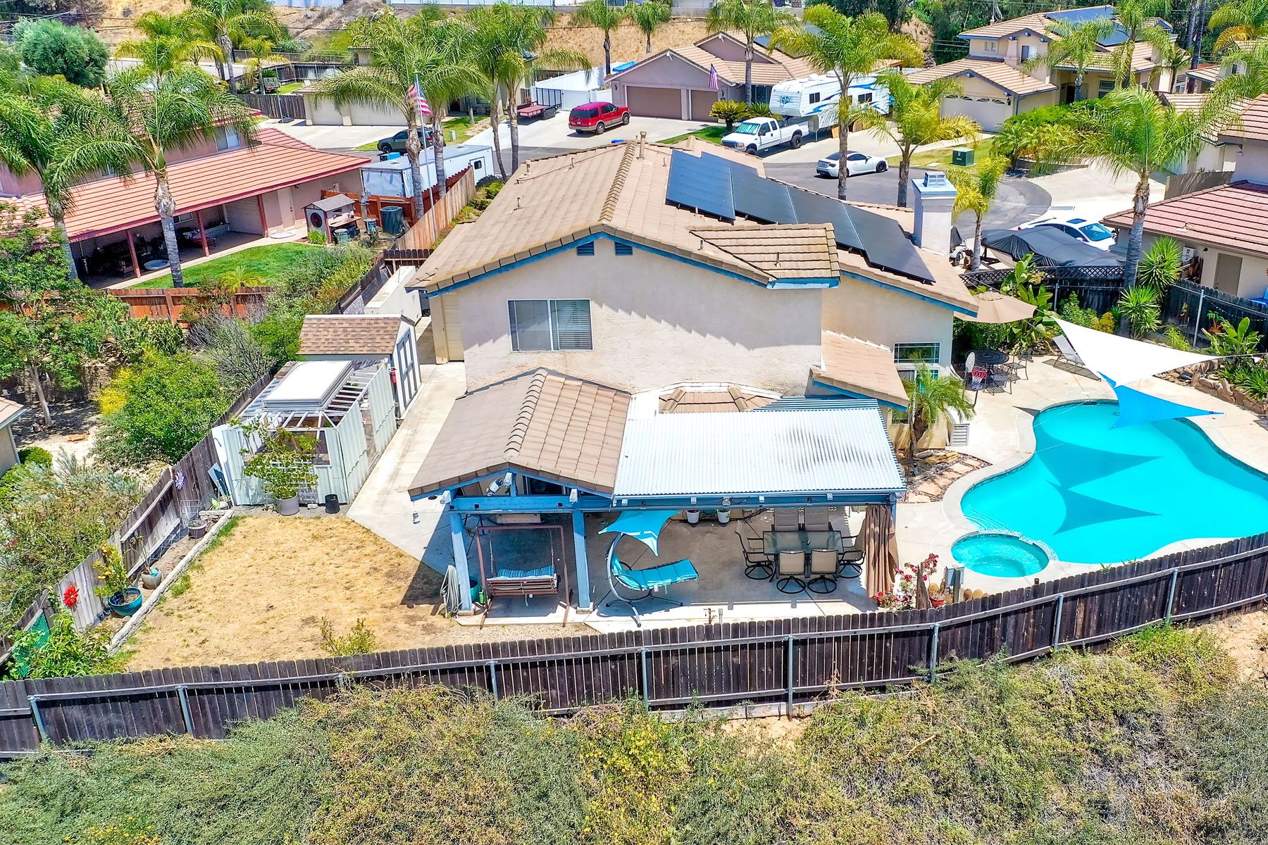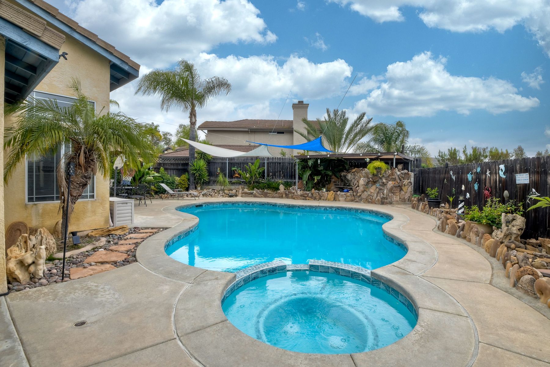 Back on the market, no fault of Sellers, Buyer could not perform. Welcome home to your Oasis in the hills. Well-maintained 4 bedroom,3 bath 2-story home features pride in ownership with mountain views. Nicely placed at the top of a cul-de-sac with wide driveway/RV parking. Downstairs bedroom. Master Bedroom upstairs has walk-in closet with Jack and Jill sinks. Perfect for entertaining with a beautiful salt water pool & spa, custom waterfall and pond, large covered patio, 3-car garage w/ singe roll-up door at rear, drought tolerant landscaping, drip irrigation system and fruit trees. Save on energy bills with solar.