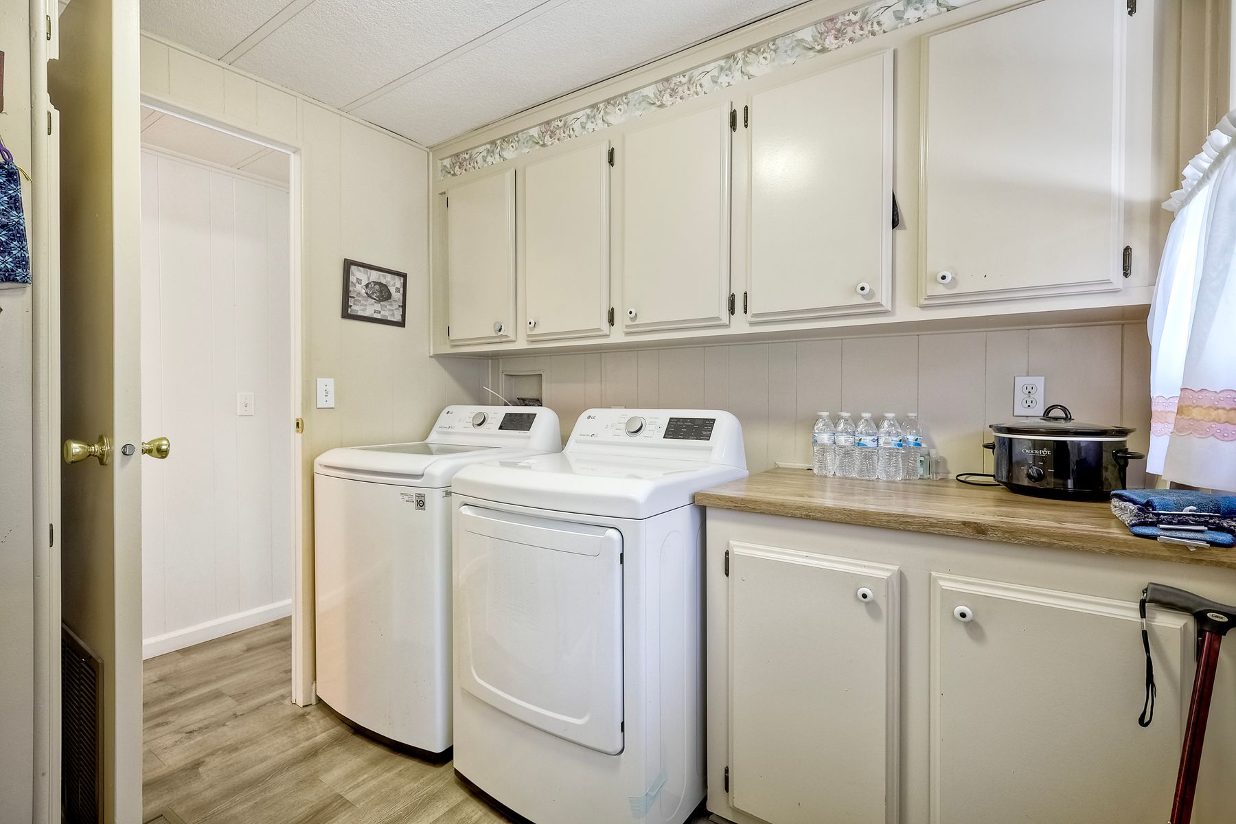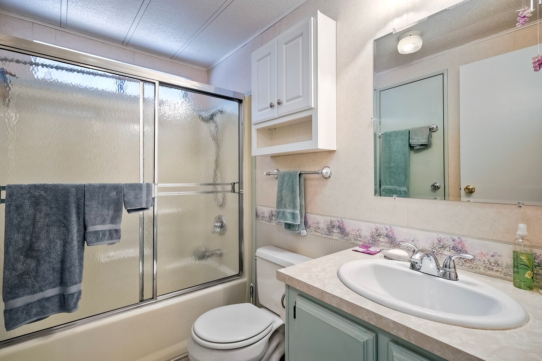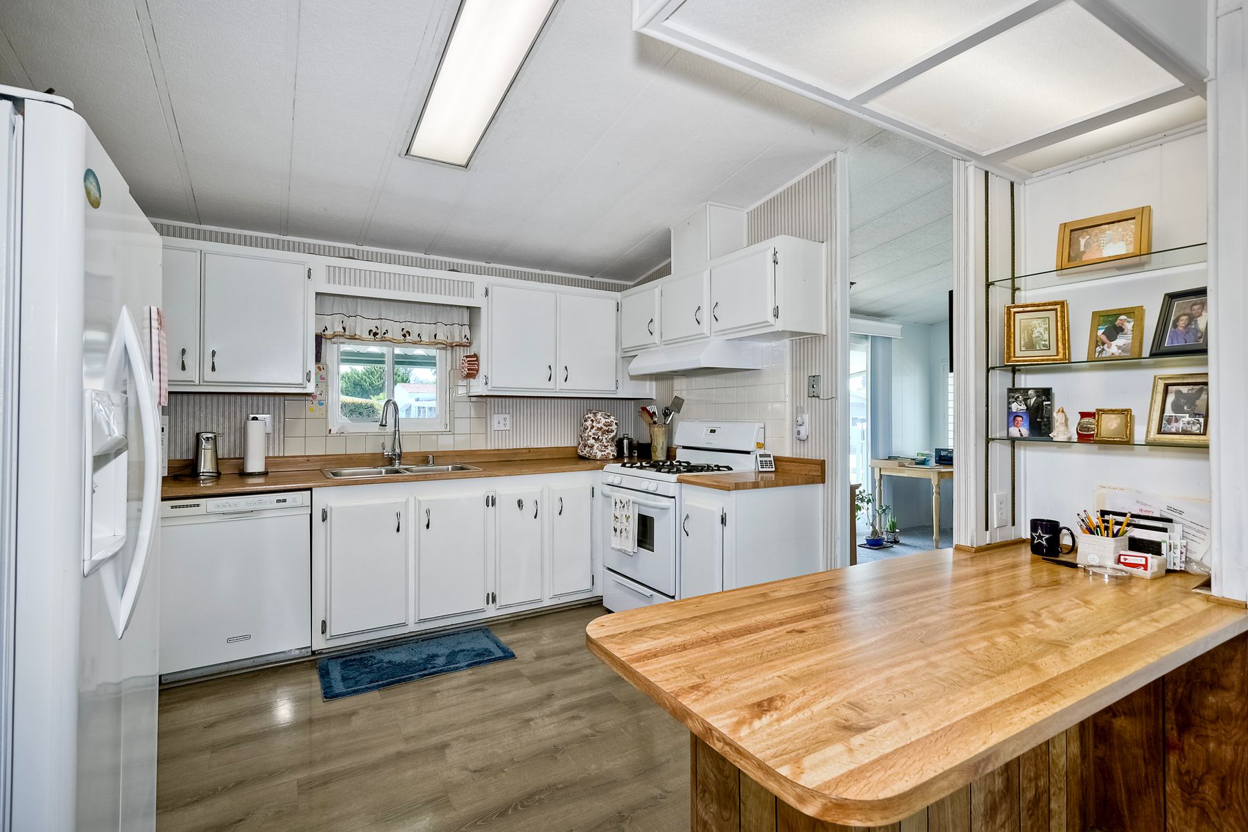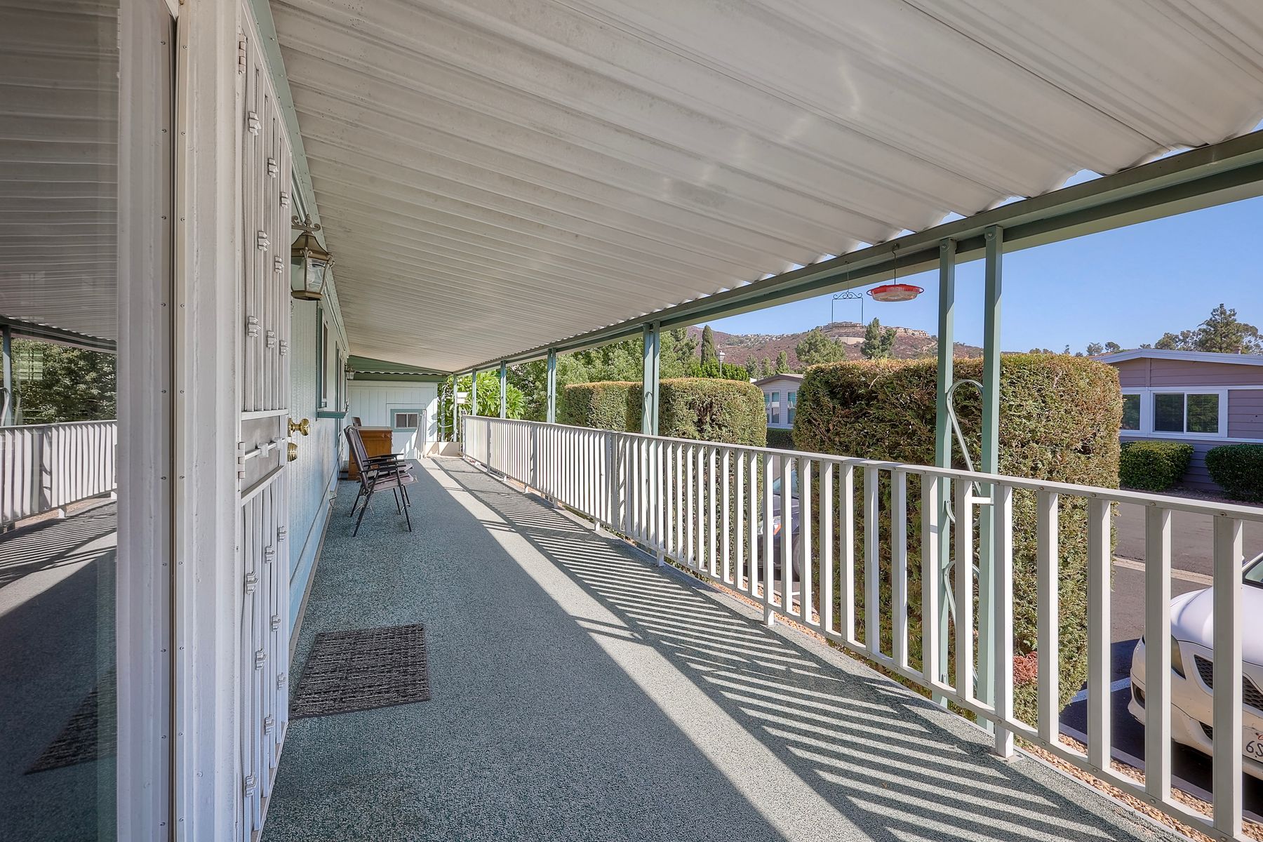 Located in the heart of a serene 55+ gated community, this well-maintained manufactured home offers spacious living and comfort. The open floor plan includes a large eat-in kitchen that seamlessly connects to the dining area and a bright living room with vaulted ceilings and plantation shutters. Dual-pane windows throughout provide energy efficiency and keep the home comfortable year-round. The master suite features a luxurious bath with both a soaking tub and separate shower. A dedicated laundry room offers ample storage. Outside, you'll enjoy a large front porch, 2-car carport with additional guest parking conveniently located nearby, as well as a generously sized storage shed for your extras. For convenience there is a wheelchair lift near the carport. This home combines comfort, functionality, and community living!