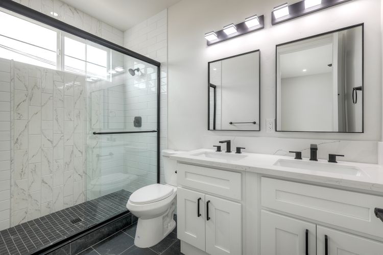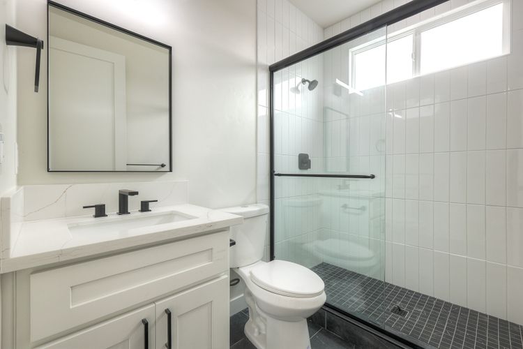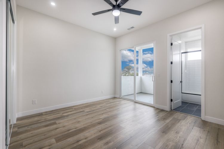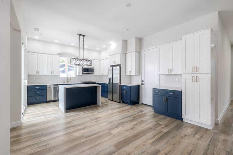 Rates are said to be falling AND brand new 2025 construction?! This impressive residence offers 4 bedrooms, 4.5 bathrooms, and approximately 2,250 square feet of thoughtfully designed living space. The flexible floor plan includes a dedicated office, multiple walk-in closets, and seamless indoor/outdoor living. Soaring 10-foot ceilings and abundant natural light create an open and inviting atmosphere throughout. At the heart of the home is a stunning designer kitchen with a large center island, quartz countertops, custom two-tone cabinetry in white and deep navy, and a striking modern light fixture. Stainless steel appliances, a gas range, and abundant storage make this kitchen both stylish and functional. Sliding glass doors open directly to the patio, creating an effortless flow for entertaining. Enjoy multiple balconies and patios, convenient laundry areas on both levels, and a spacious two-car garage. The private-entry attached guest suite functions as a true one-bedroom, one-bath “in-law” setup complete with its own laundry, living area, and kitchenette—perfect for multigenerational living, extended guests, or potential rental income. Located in a peaceful neighborhood with no HOA fees, this home combines modern comfort with smart versatility. Move-in ready and built new from the ground up, it’s an exceptional opportunity.