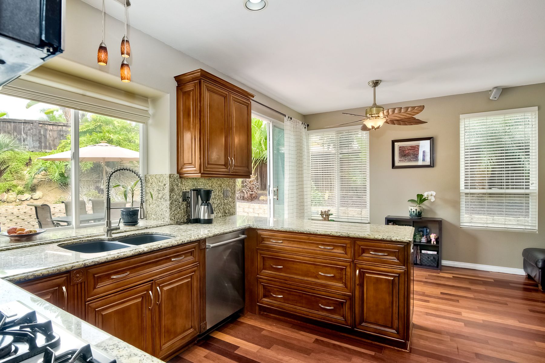 Beautifully updated Discovery Hills home! Features include: custom kitchen cabinets with granite counters/SS appliances, hardwood flooring, upgraded master bath (seamless glass shower, soaking tub), custom patio entry/gate, RV parking, newer AC/furnace, Solar (prepaid/30 + panels), large yard with tropical low-maintenance landscape (artificial turf), huge stamped concrete patio, spa, outdoor shower... Excellent location just 2 blocks from Lakeview Park and Discovery Lake. Highly rated Schools!