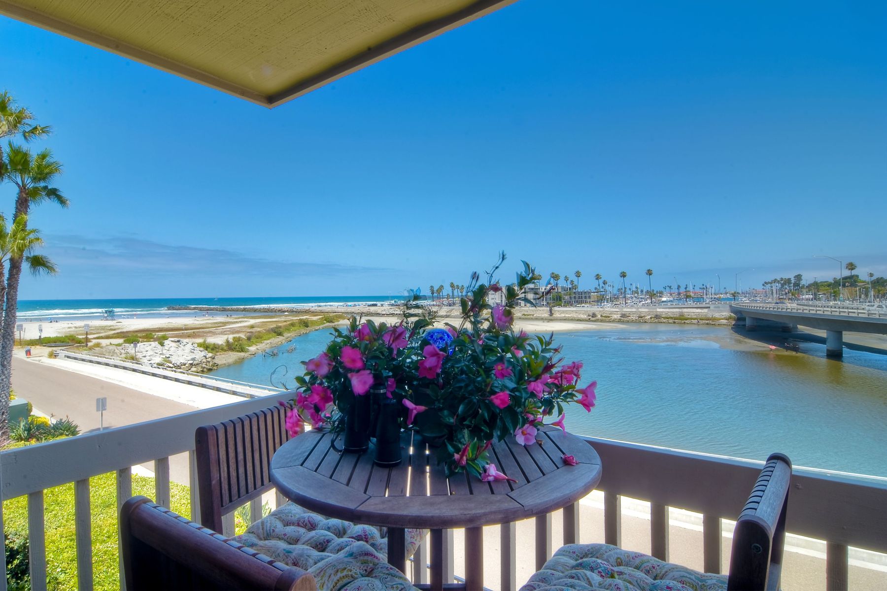 From your balcony you will marvel at the active view starting where the white water meets the sand bar meets the mouth of water that flows to the San Luis Rey River. Your gaze includes sandy beaches, surfers, white water waves, the Harbor, sailboats and restaurants. Straight out is the beautiful estuary delighting birding and wildlife watchers. NC Village offers koi ponds, putting greens, BBQ areas, Rec room, pools and hot tubs, and more. Turnkey cottage with clean lines and an open and airy feel.